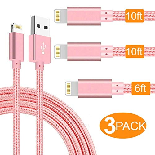 Pink / Rose Gold 1*10FT Extra – Length + 2*6FT Original Length EXTRA-DURABLE iPhone cord