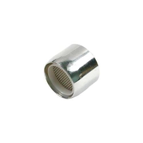 Female Aerator, 3/4"27-thread, solid brass body. diffuser chamber design, creates venturi action by 1 piece brass diffuser assembly introducing air through bottom of body which mixes with water in chamber area. triple chrome plaed. bagged.