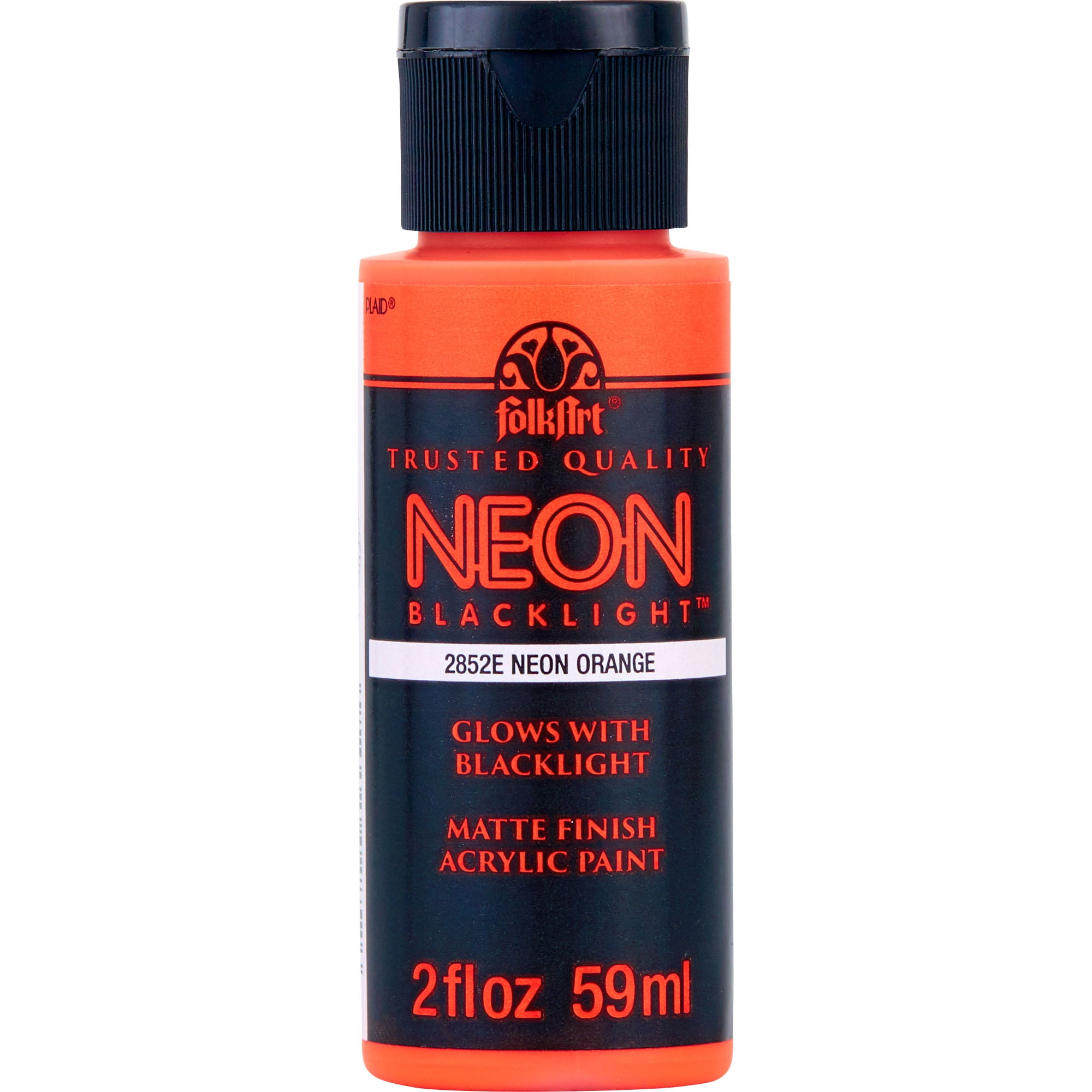 FolkArt Neon Blacklight Acrylic Craft Paint, Matte Finish, Orange, 2 fl oz