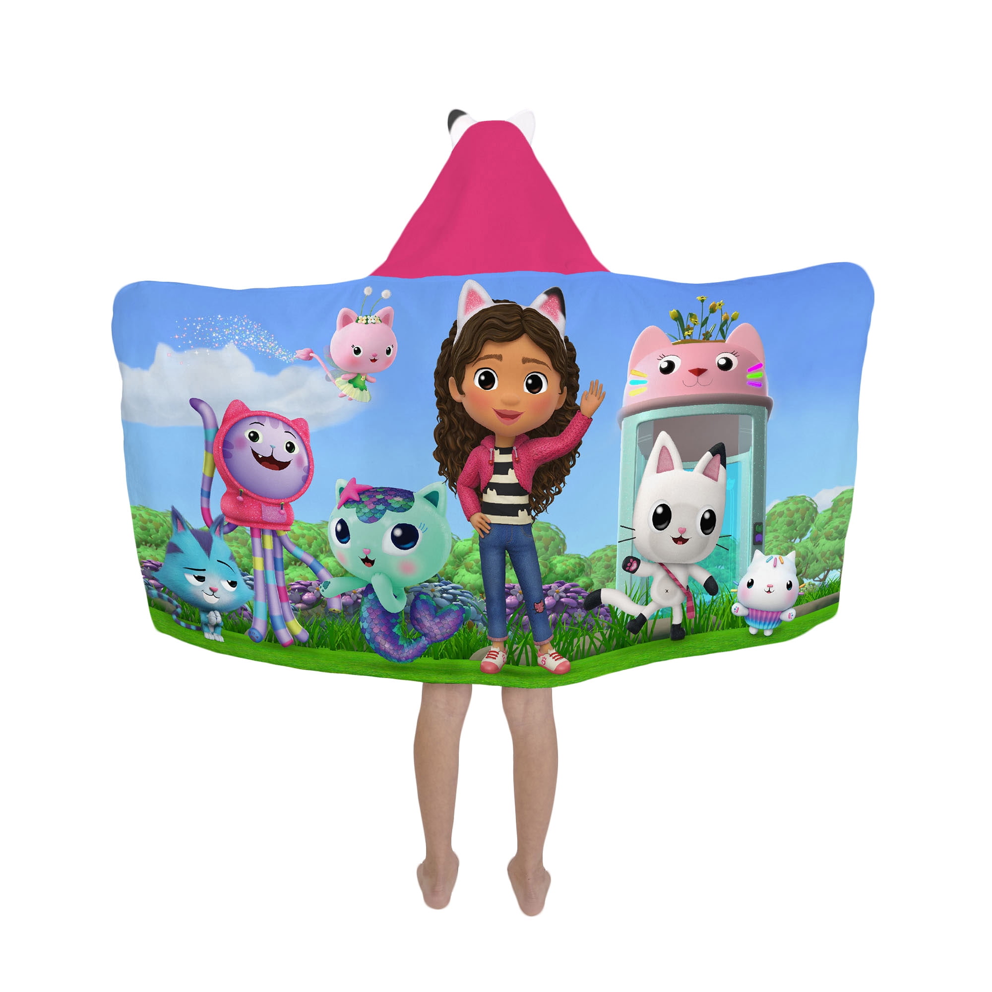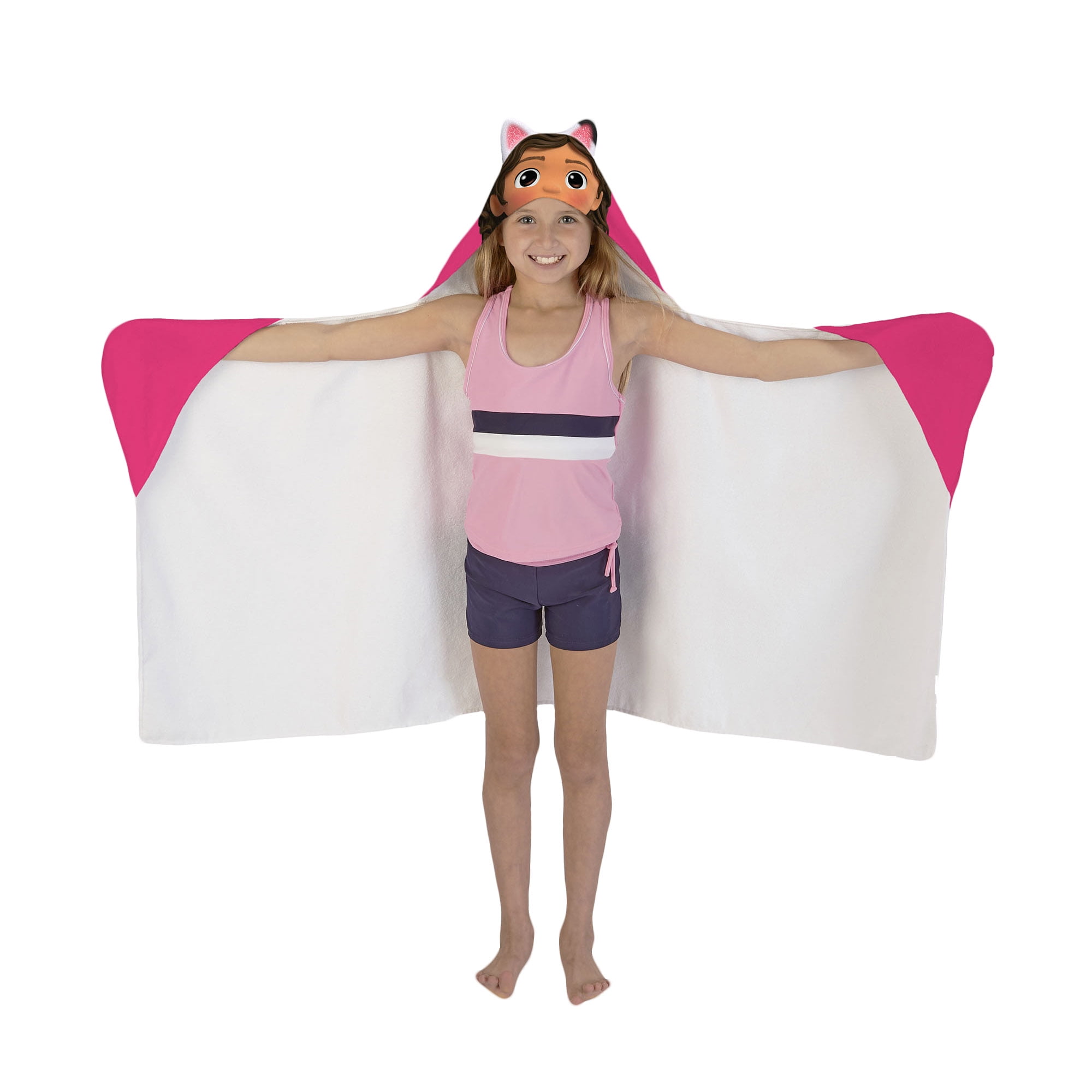 - ★ GABBY’S DOLLHOUSE DESIGN : With her magical cat ears, Gabby takes kids on silly and imaginative adventures inside her special dollhouse, meeting new cat friends and turning mistakes into opportunities for humor and growth along the way. Bring home the adventure with this hooded towel, featuring Gabby’s cat ears, and help your little one explore their own world.