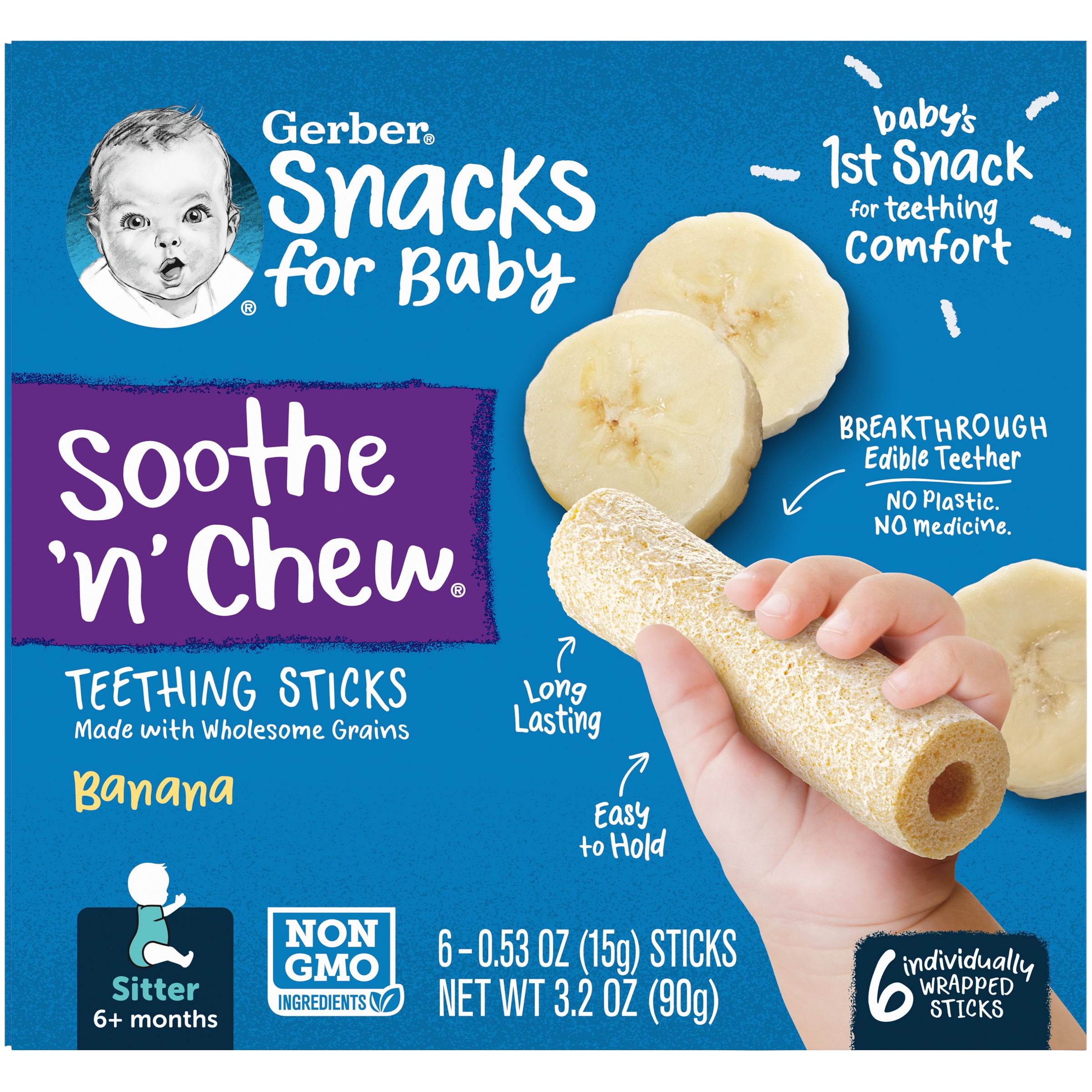 Gerber Snacks for Baby Soothe n Chew Teething Sticks Banana, 0.53 oz Box (6 Pack)