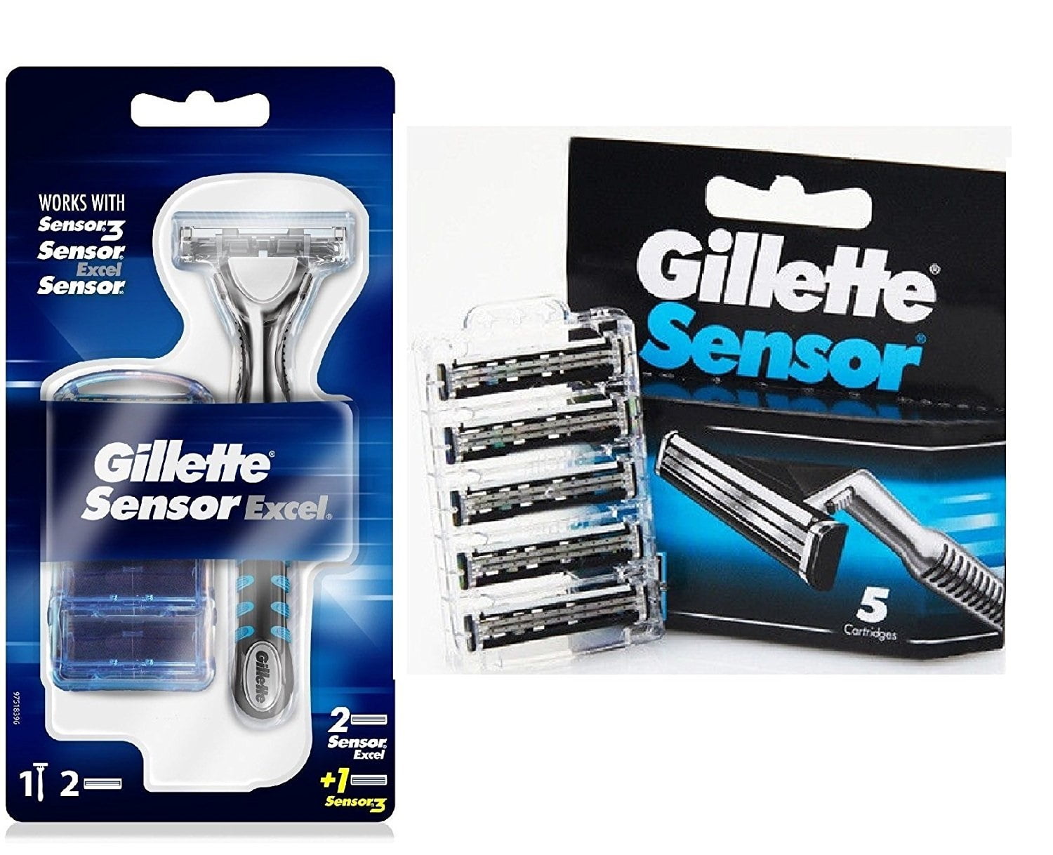 Gillette Sensor Excel Razor w/ 3 Cartridges + Gillette Sensor 5 Ct. Refill Blades + Eyebrow Ruler
