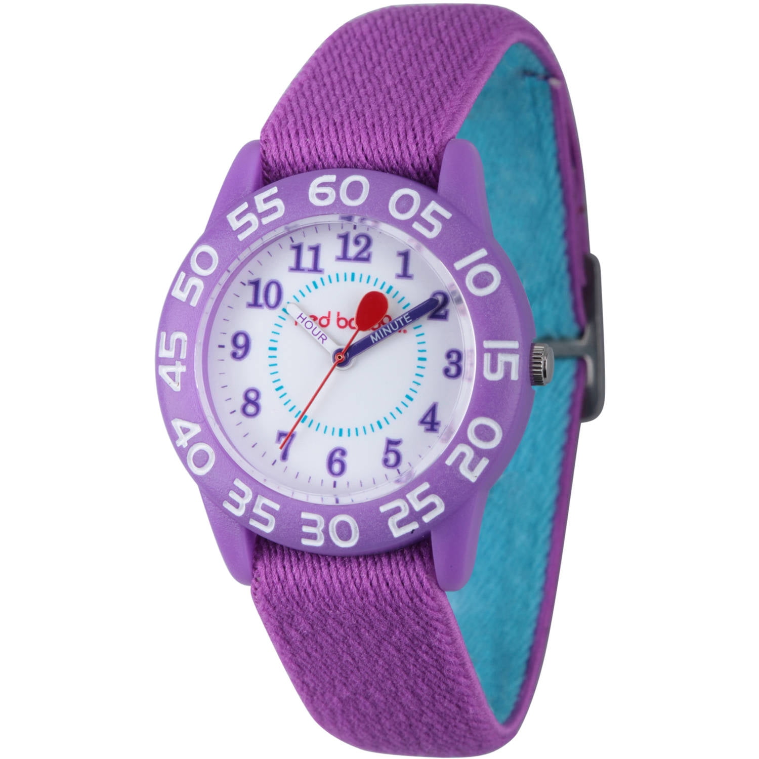 Girls’ Purple Plastic Time Teacher Watch, Reversible Purple and Blue Elastic Nylon Strap