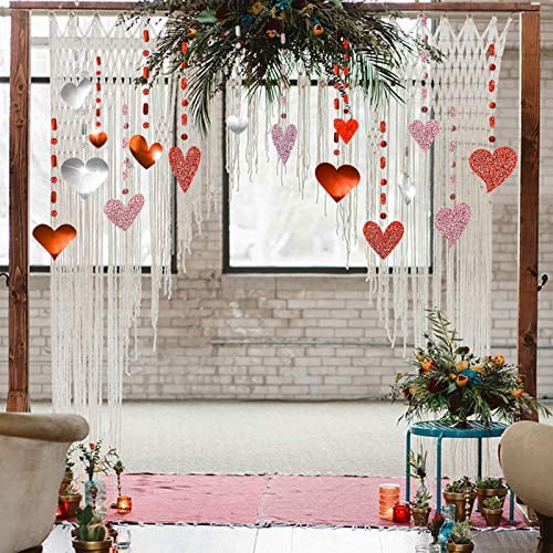 Glitter Pink Red Heart Garland Decorations Hanging Heart Streamer Banner String Backdrop for Valentines Day Mother’s Day Decor Wedding Anniversary Bachelorette Engagement Baby Shower Birthday Party