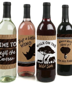 Wild Safari – African Jungle Adventure Birthday Party or Baby Shower Party Decorations for Women and Men – Wine Bottle