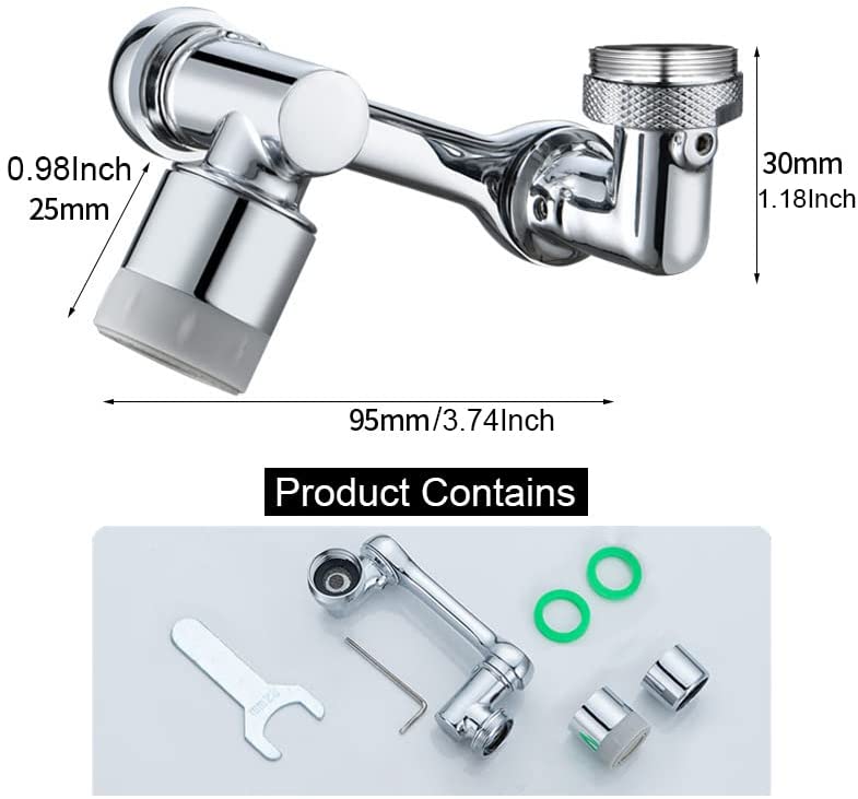 - 1080° Full Rotating: There are 3 interfaces that can be adjusted 360 degrees in all directions. Robotic arm water nozzle faucet adaptor splash filter kitchen tap extend, can reach every corner of the sink for easy cleaning.