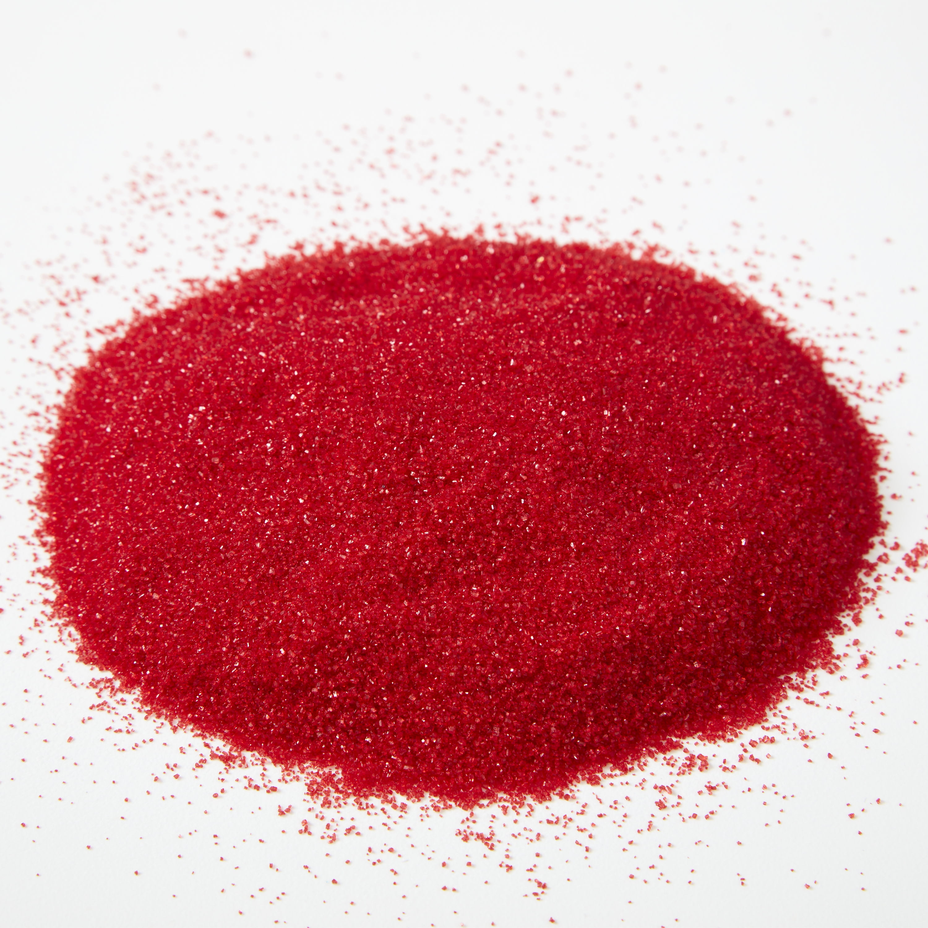 Add a pretty pop of sweetness to your treats with this red sanding sugar. Top cupcakes, cakes or cookies. Can also be used with stencils to create designs on cakes, cookies, cupcakes or candies.