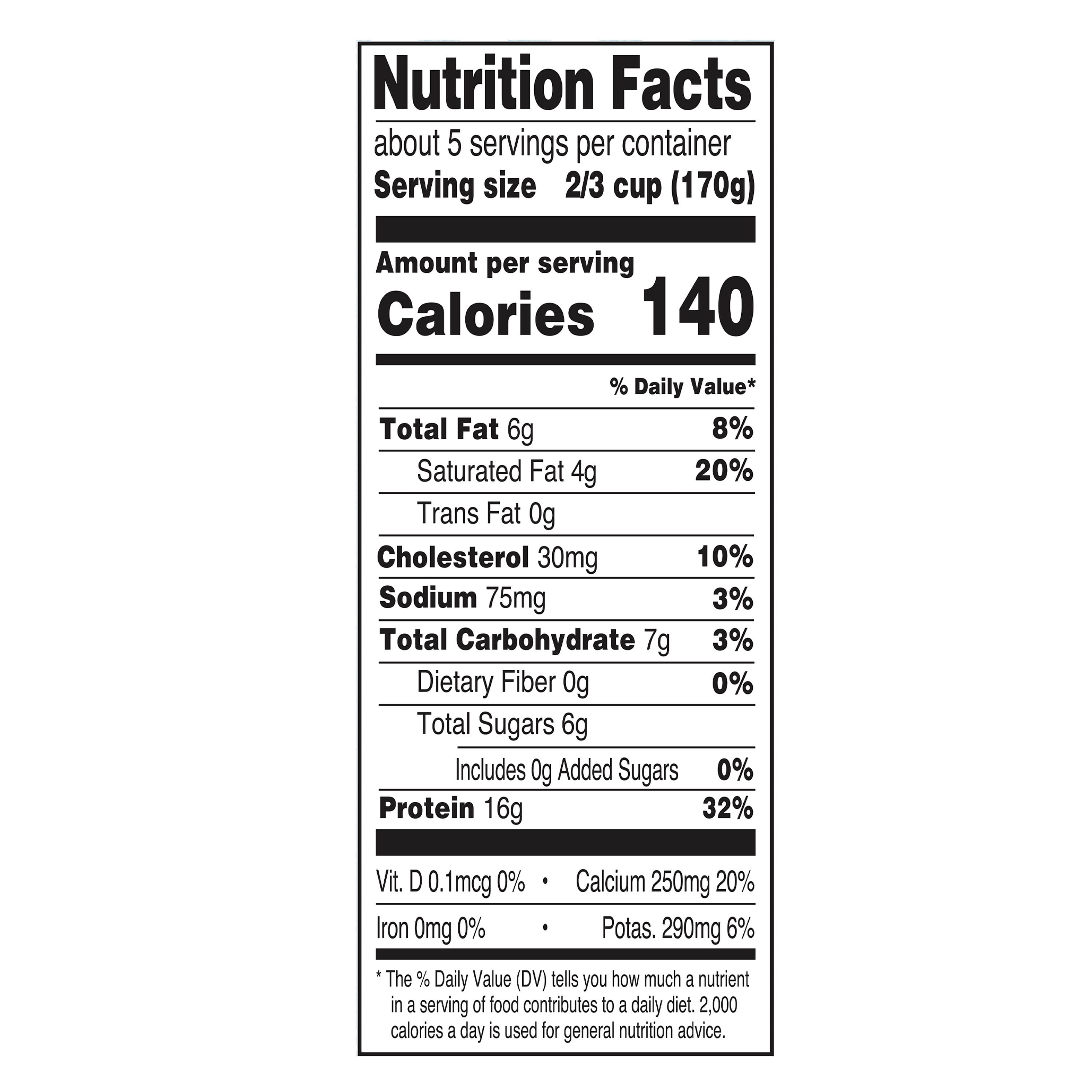 The possibilities are endless with this Great Value Whole Milk Plain Greek Yogurt. It offers about five servings per container and is packed with 16 g of protein per serving. It’s also a nice source of calcium and potassium. Lean on the thick, creamy Grade A goodness of this whole milk Greek yogurt for your pancake mix, parfaits, smoothies or use it as a substitute for mayo or other fat-filled cream blends. It has never been so simple to put a healthy spin on your favorite baked treats, appetizers, and main dishes. Tap into your culinary creativity today with Great Value Whole Milk Plain Greek Yogurt.