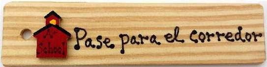 HALL PASS – SPANISH, AA-911SPS MADE IN USA – 8’x2′ WOODEN PASS w/SCHOOLHOUSE & HANG LOOP