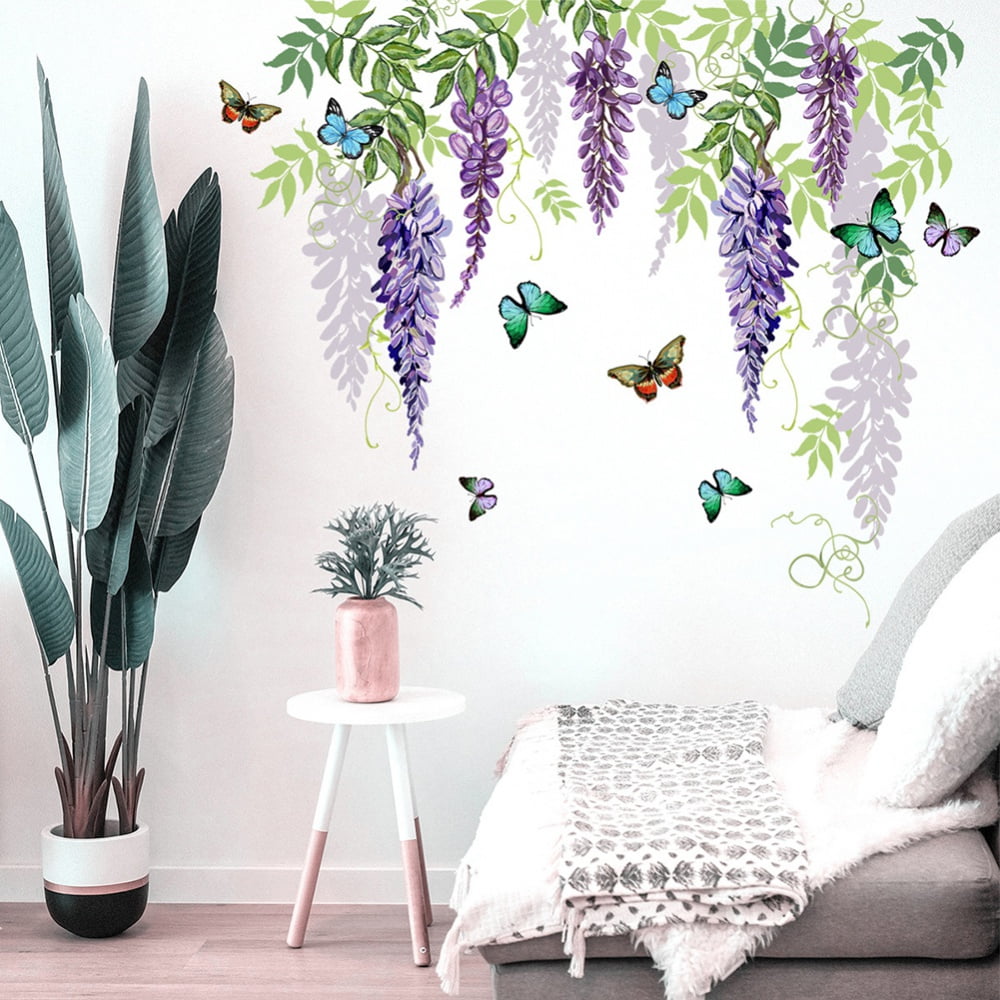 Hanging Wisteria Flower Leaves Wall Stickers Removable PVC Wall Decals Peel and Stick Wall Art Decorations Decor for Bedroom Living Room Murals