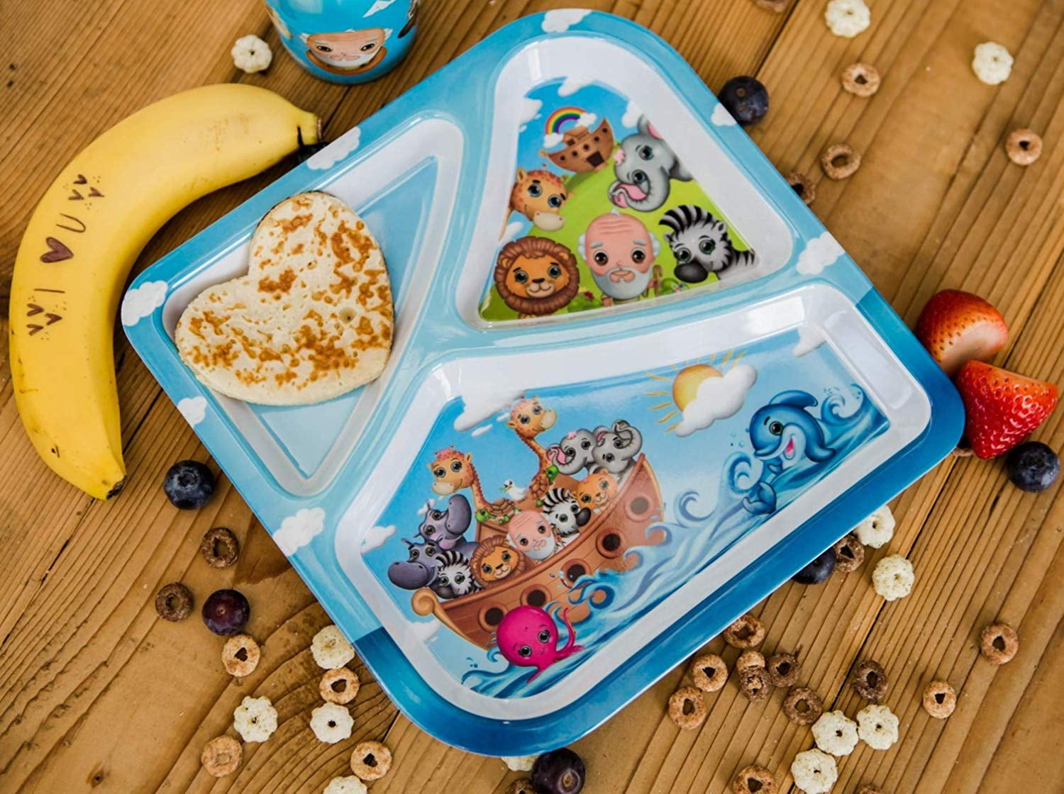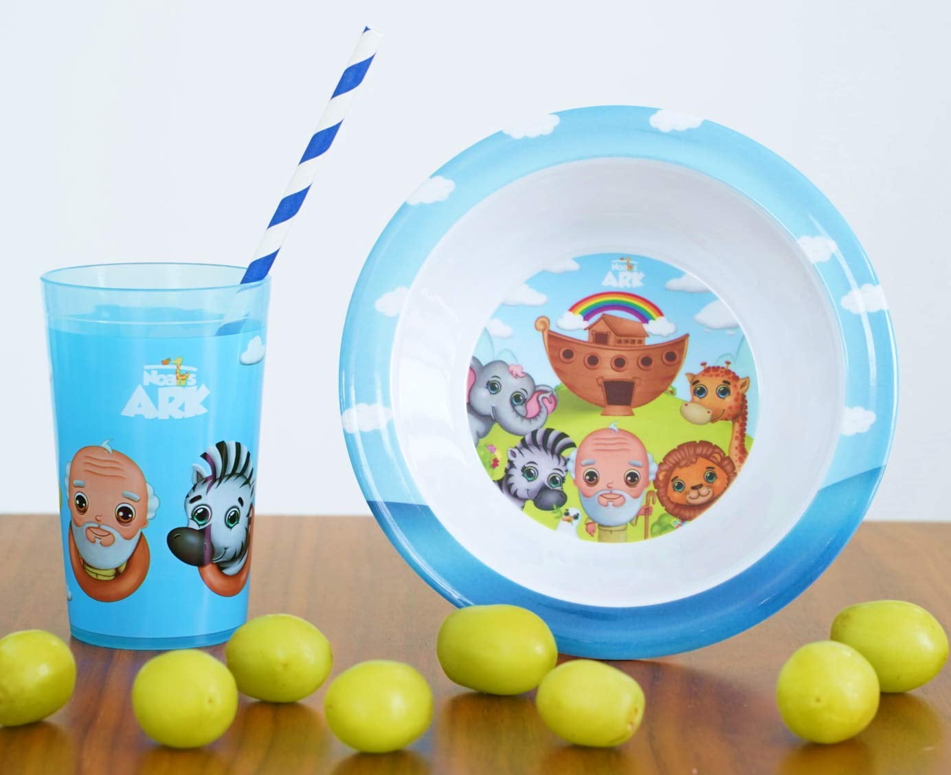 ll the little ones a true story during their meal. Talk about Noah’s journey on the ark with his family and the animals.He Loves Me Kids Feeding Noah’s Ark 3 Piece Set Toddler Dishes Multicolor, BPA Free, Kids Dinnerware Includes Round Bowl, Divided Plate and Children’s Tumbler Cup Gift for Birthdays & Graduations