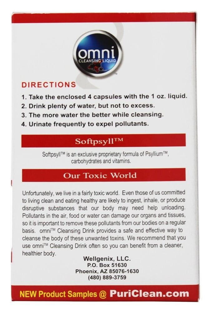 Heaven Sent Omni Cleansing Liquid Concentrate Plus 4 Cleansing Caps Fruit Punch – 1 fl ozHeaven Sent Omni Cleansing Liquid Concentrate Plus 4 Cleansing Caps Fruit Punch Description: Extra Strength Stage 3 with Softpsyll Formulated to Cleanse Immediately Unfortunately we live in a fairly toxic world and even those of us who are committed to living clean and eating healthy are likely to ingest, inhale, absorb, or produce our own fair share of disruptive substances, substances that our body would be better off without and may need help unloading. Pollutants in the air, food and water we ingest can cause damage to our organs and tissues. It is important that we cleanse these poisonous toxins from our bodies regularly. Omni Cleaning Liquid provides a safe effective way to help cleanse the body of unwanted toxins that build up in your body on a daily basis. Disclaimer These statements have not been evaluated by the FDA. These products are not intended to diagnose, treat, cure, or prevent any disease.