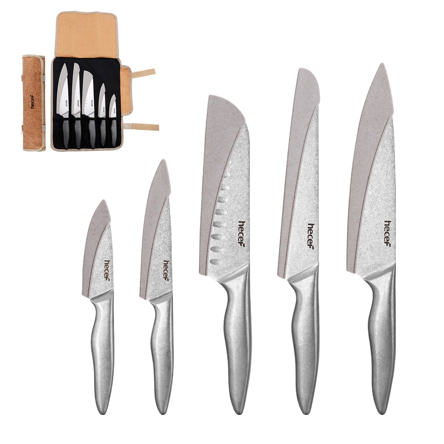 Hecef Kitchen Knife Roll Set Stonewashed Camping Cutlery with Oxford Cloth Carry Bag