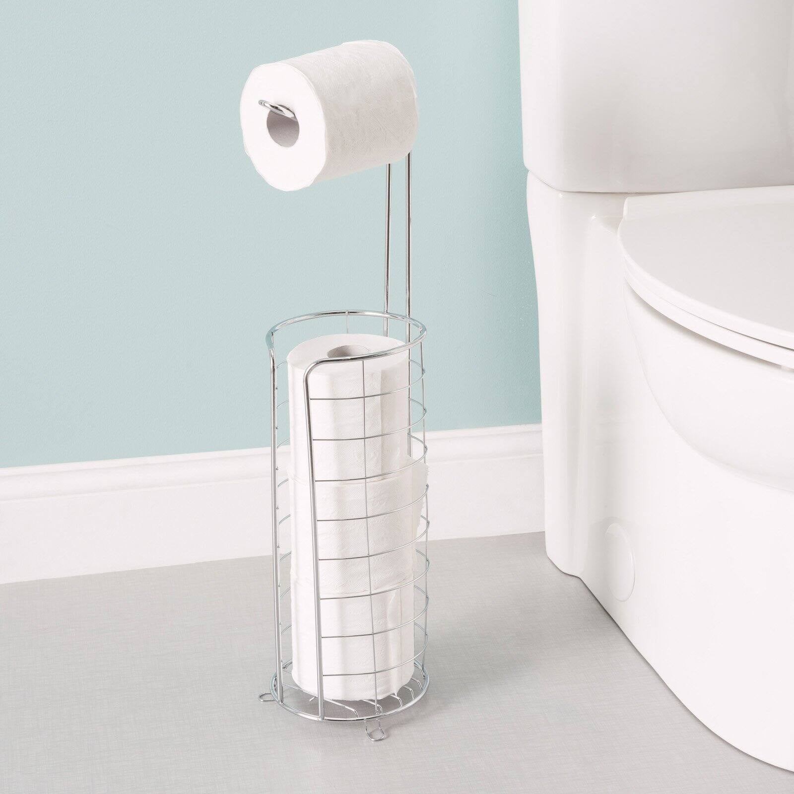 With the Home Basics Vertical Toilet Paper Holder tucked into a corner or near your toilet bowl, you’ll never find yourself short on toilet paper again. This holder and dispenser keeps a total of four rolls within reach. Raised feet on the bottom ensure the paper won’t make direct contact with your bathroom floor.