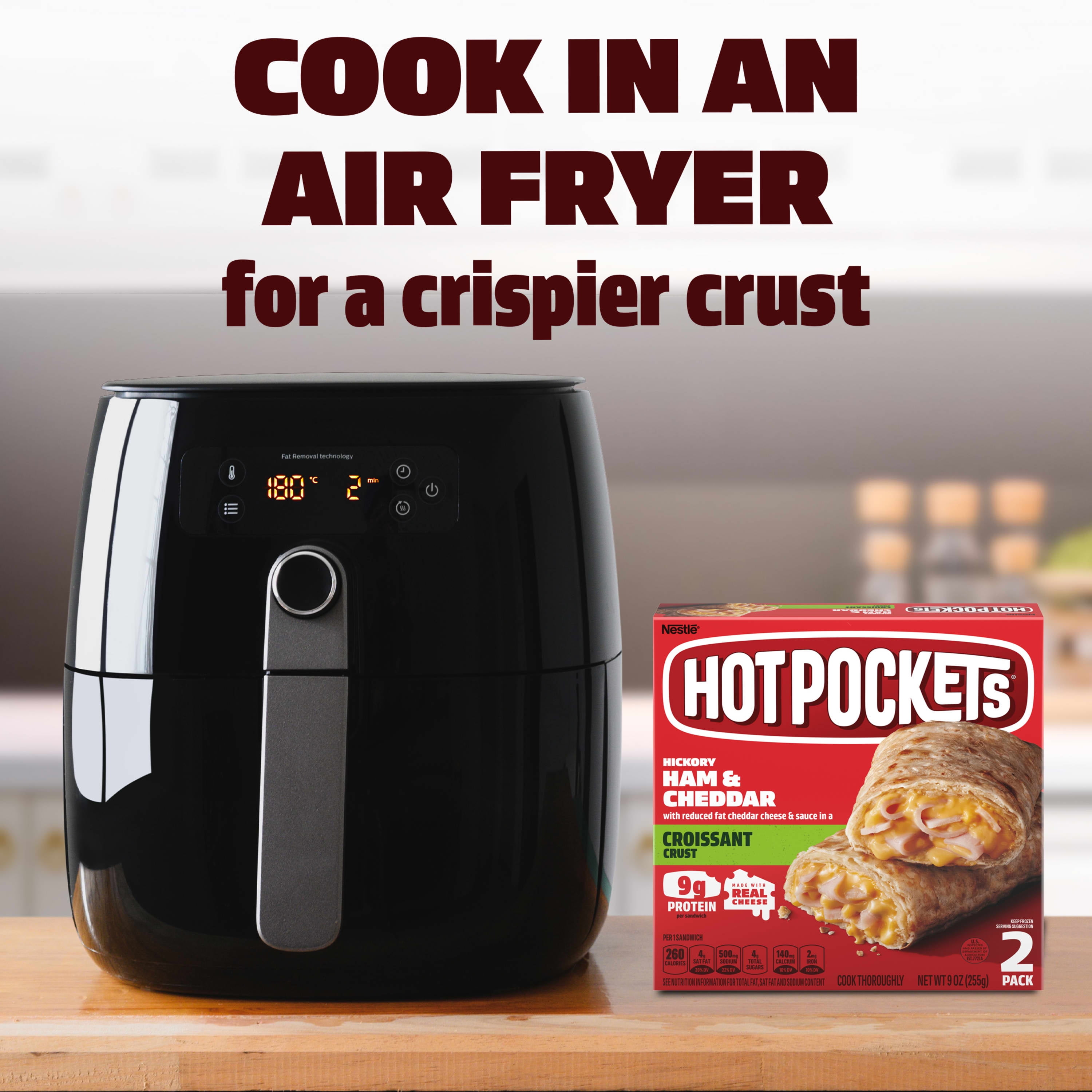 Hot Pockets Frozen Snacks Hickory Ham and Cheddar Croissant Crust Sandwiches, 9 oz (Frozen)