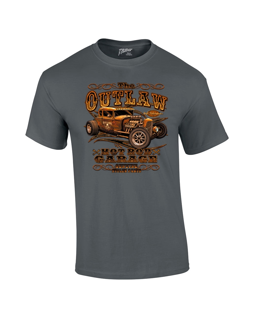Hot Rod Classic Cars T-shirt The Outlaw Garage Genuine Stolen Parts Vintage Vehicles Tee Mechanic Car Enthusiast Racing -charcoal-large