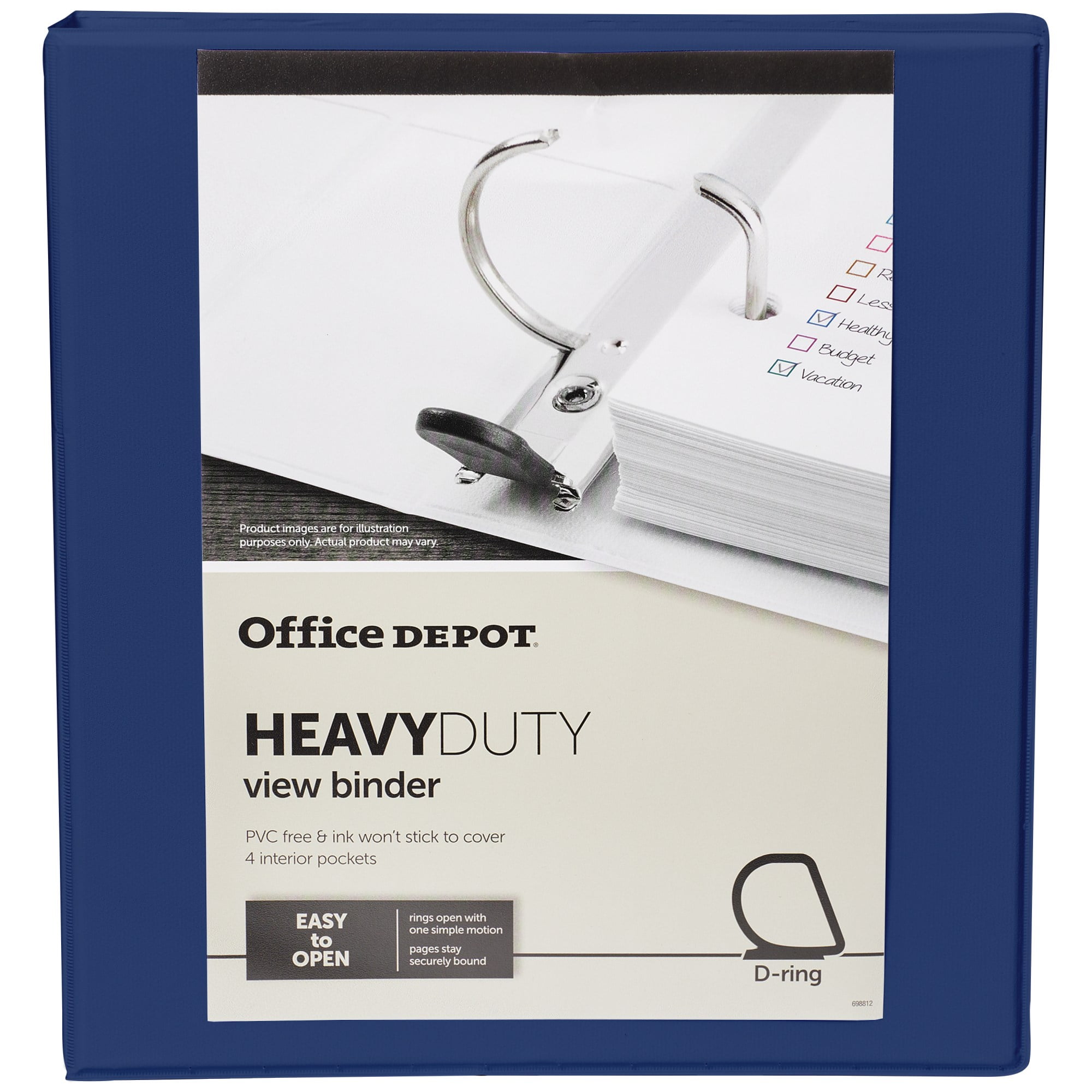 - Ensure your paper work is organized and protected with this Office Depot heavy-duty D-ring binder. Compatibility with standard three-hole punched pages makes it easy to gather your papers for storage, while the binder board construction delivers durability to handle the workday or multiple classes. Featuring nonstick polypropylene covers, this Office Depot heavy-duty D-ring binder resists ink transfer to keep your writing clear and readable.