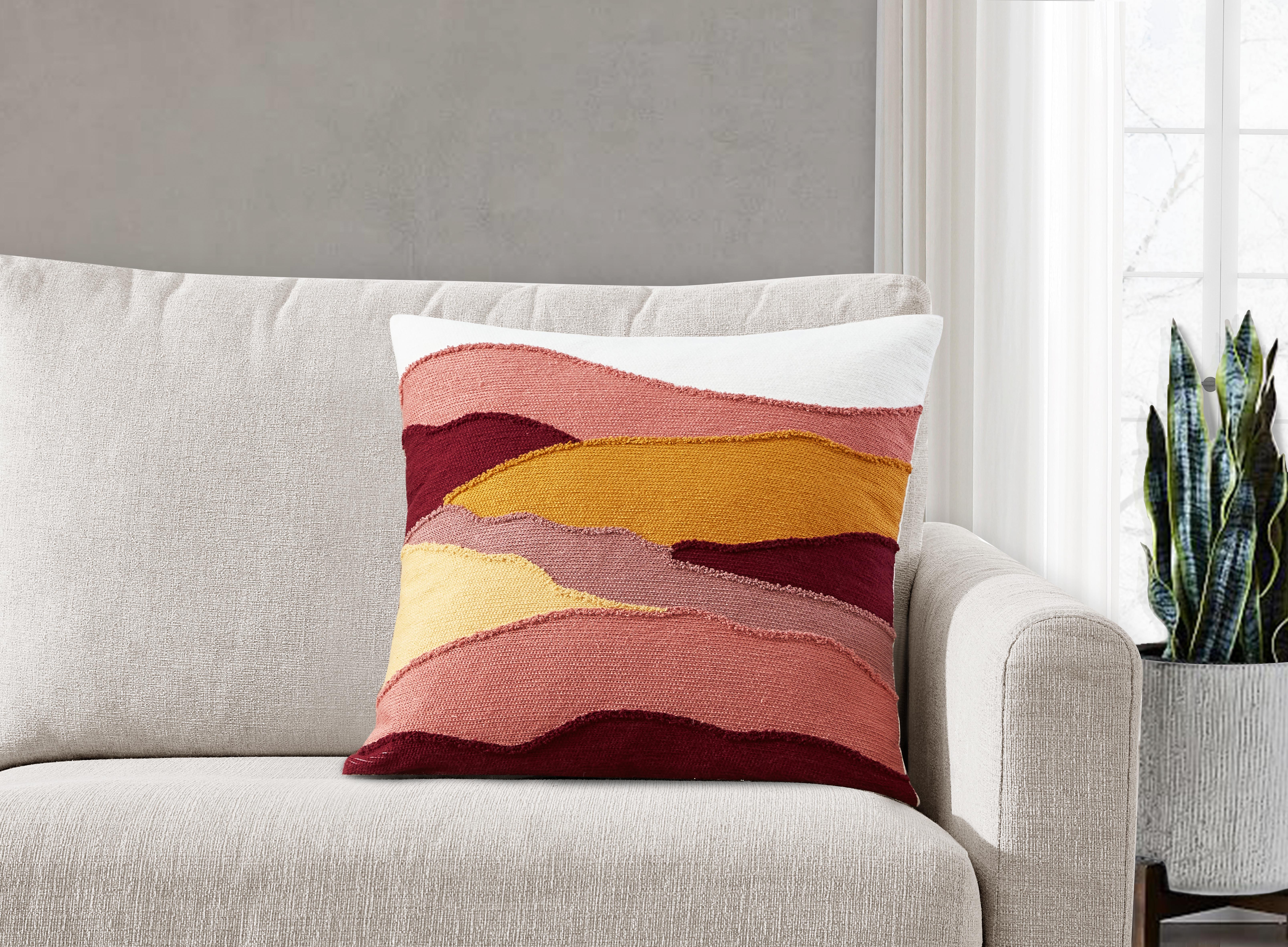 Waves Hooked Embroidery Decorative Throw Pillow, Blush, 18′ x 18′, Square, 1 Piece