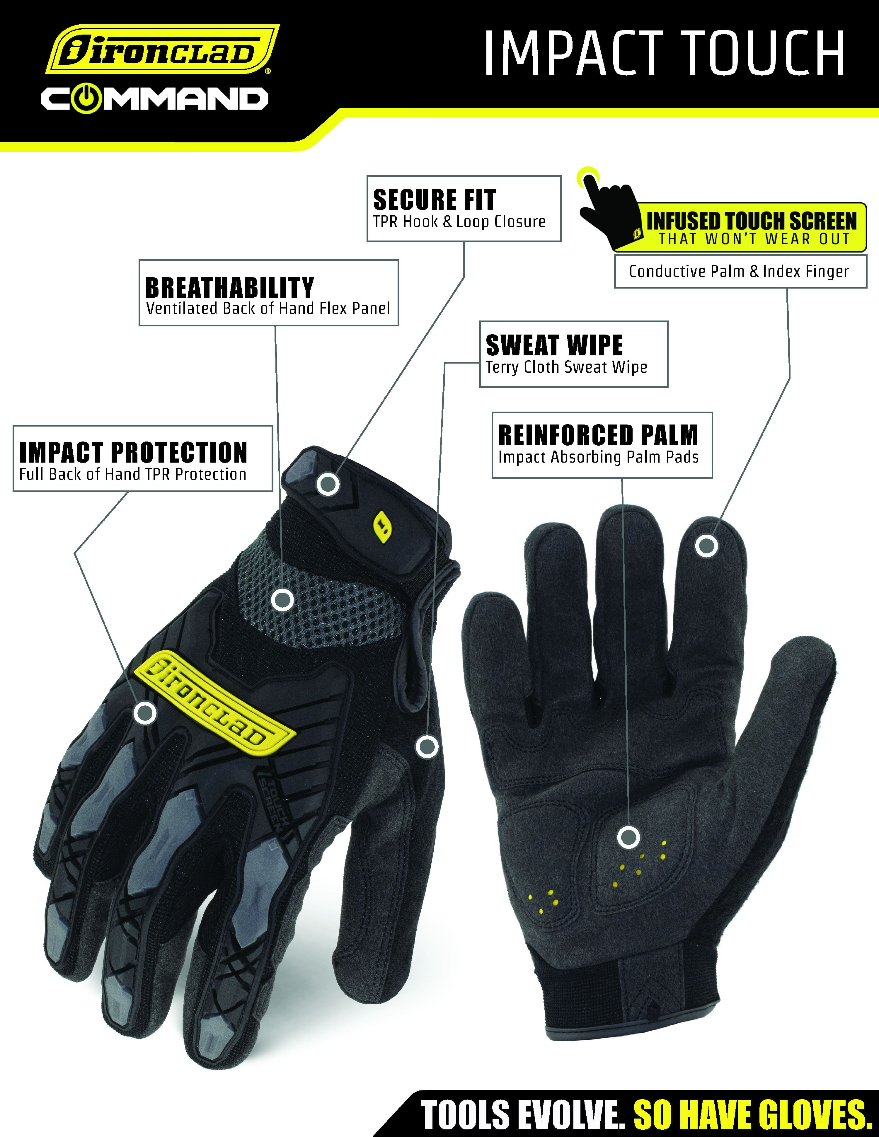 Ironclad Command Touch Screen Impact Work Gloves; Black