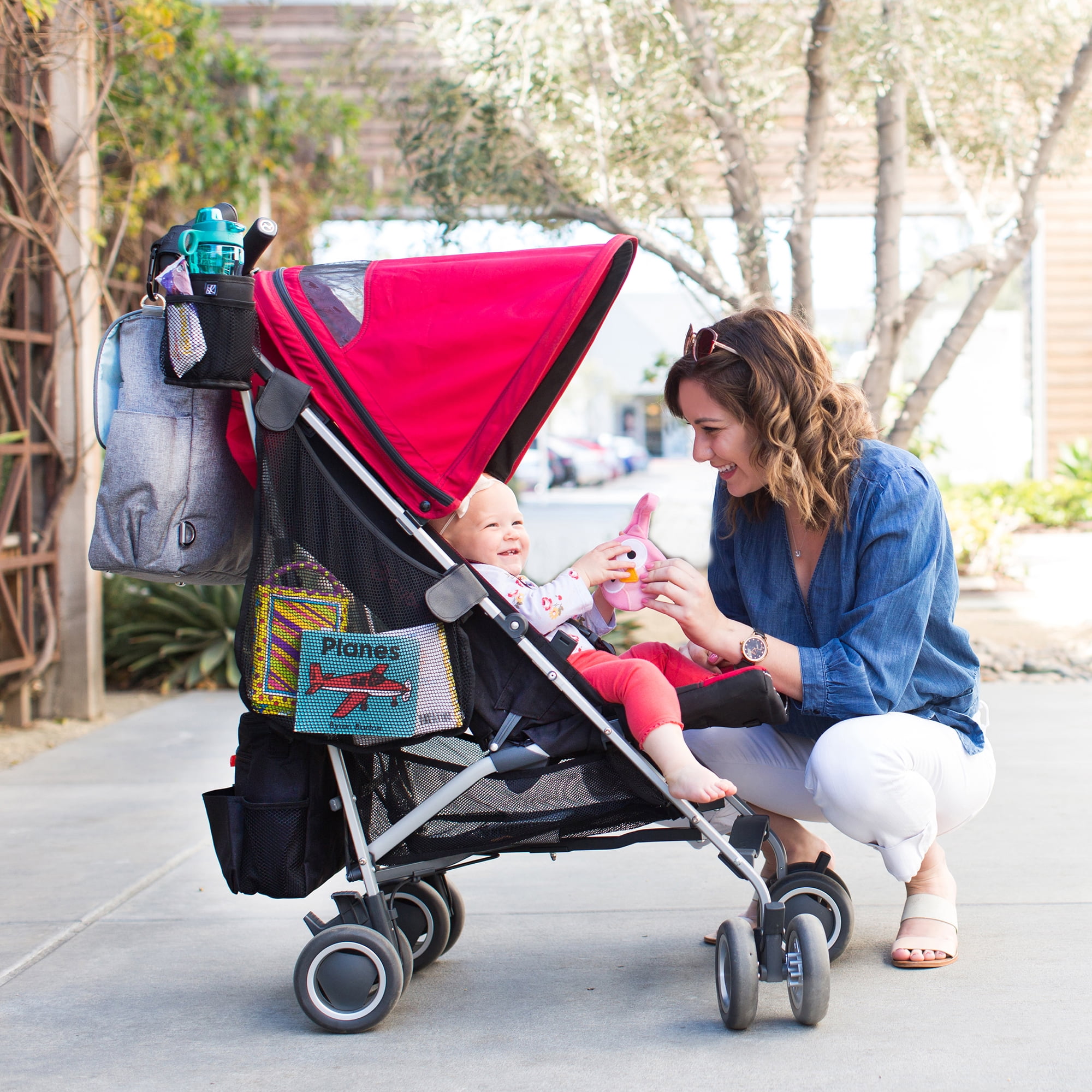 - Multi-functional design can be used on either or both sides of almost any stroller