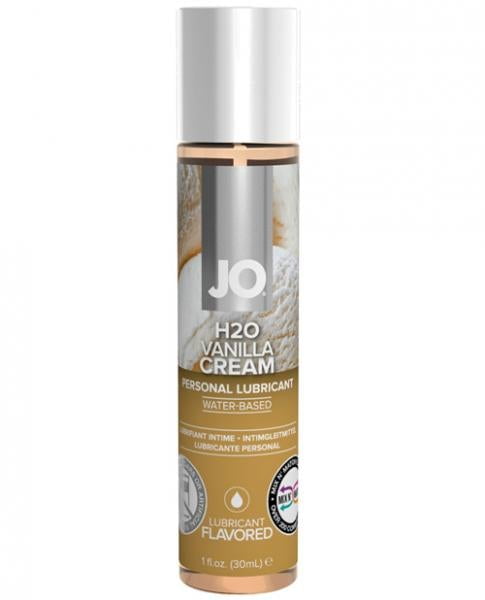 Specifications: H2O Personal Lubricant. Type: Water Based Flavored. Feel: Silky Smooth Non Oily. Lasting Period: Long Lasting. Attributes: Similar in Feel to JO Silicone but without any Silicone. Cleaning: Water with or without soap. Color: Clear. Scent: Vanilla Cream. Taste: One. Performance Underwater: No. Usage with Silicone Toys: Yes. Usage with Non Silicone Toys: Yes. Latex Condom Compatible: Yes. 1 ounce non-graphic plastic bottle. Vanilla Cream Flavored Lubricant from System JO. Meet your new best friend. Ingredients: Propyl Paraben Methyl Paraben Sodium Carboxy Methyl Cellulose Glycerine Purified Water Natural and Artificial Flavor. Made in the USA. 17