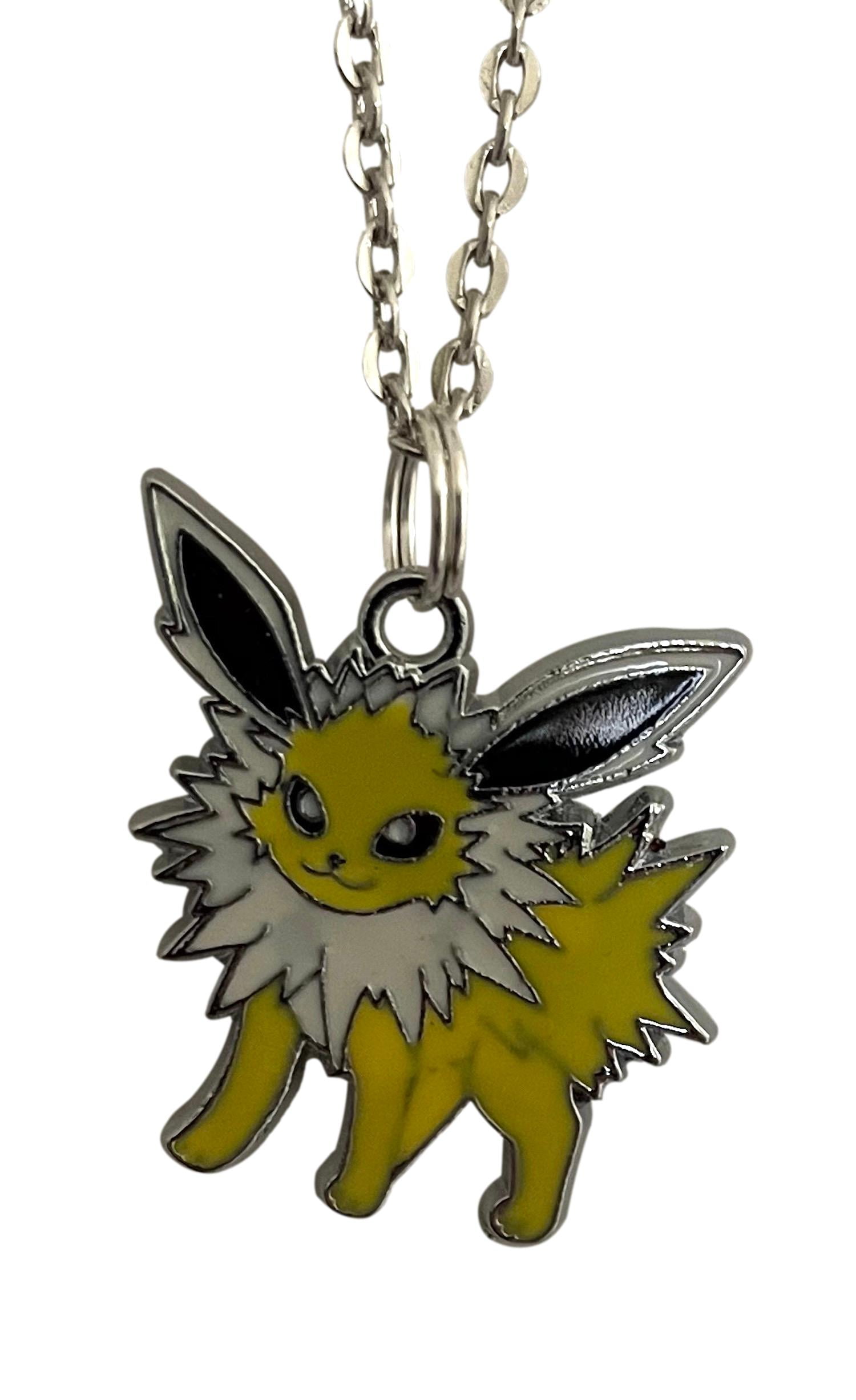Pokemon Jolteon Necklace. Colorful enamel filled charm pendant is approx. 1 1/8 inch tall. Sits on an 18 inch easy to open and close lobster clasp chain.