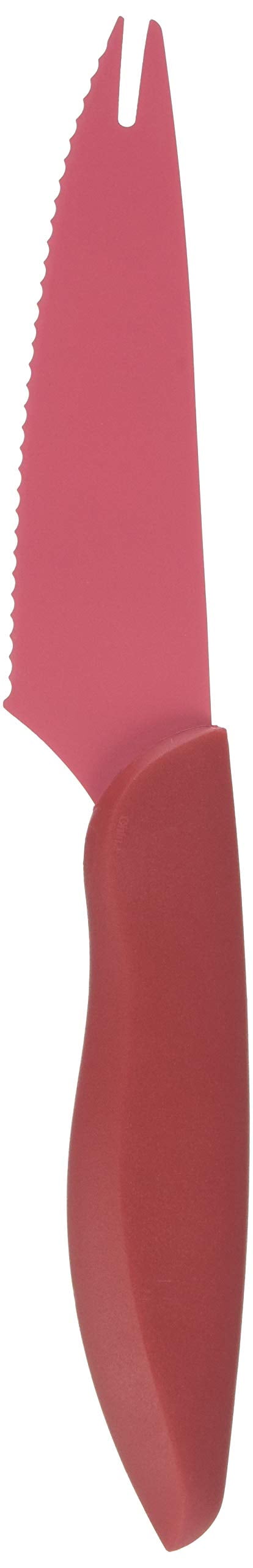 The tomato knife has a serrated blade to get through the skin without crushing the tomato.Kai Pure Komachi 2 knives are color coded to help prevent cross-contamination between produce and proteins. Hand-sharpened and finished 16 degree cutting edge each side for fast, easy food preperation.Includes color-matched sheath for safe and easy storage. Food safe blade coating helps food release from blade, resists corrosion and cleans easily.