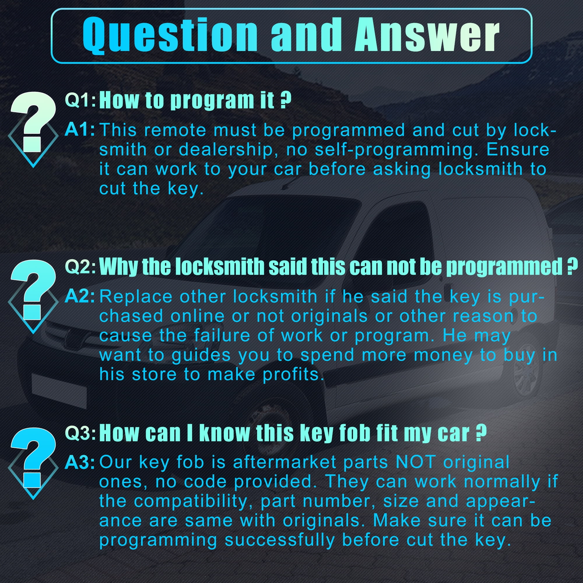 - This remote must be programmed and cut by a qualified locksmith or dealership.