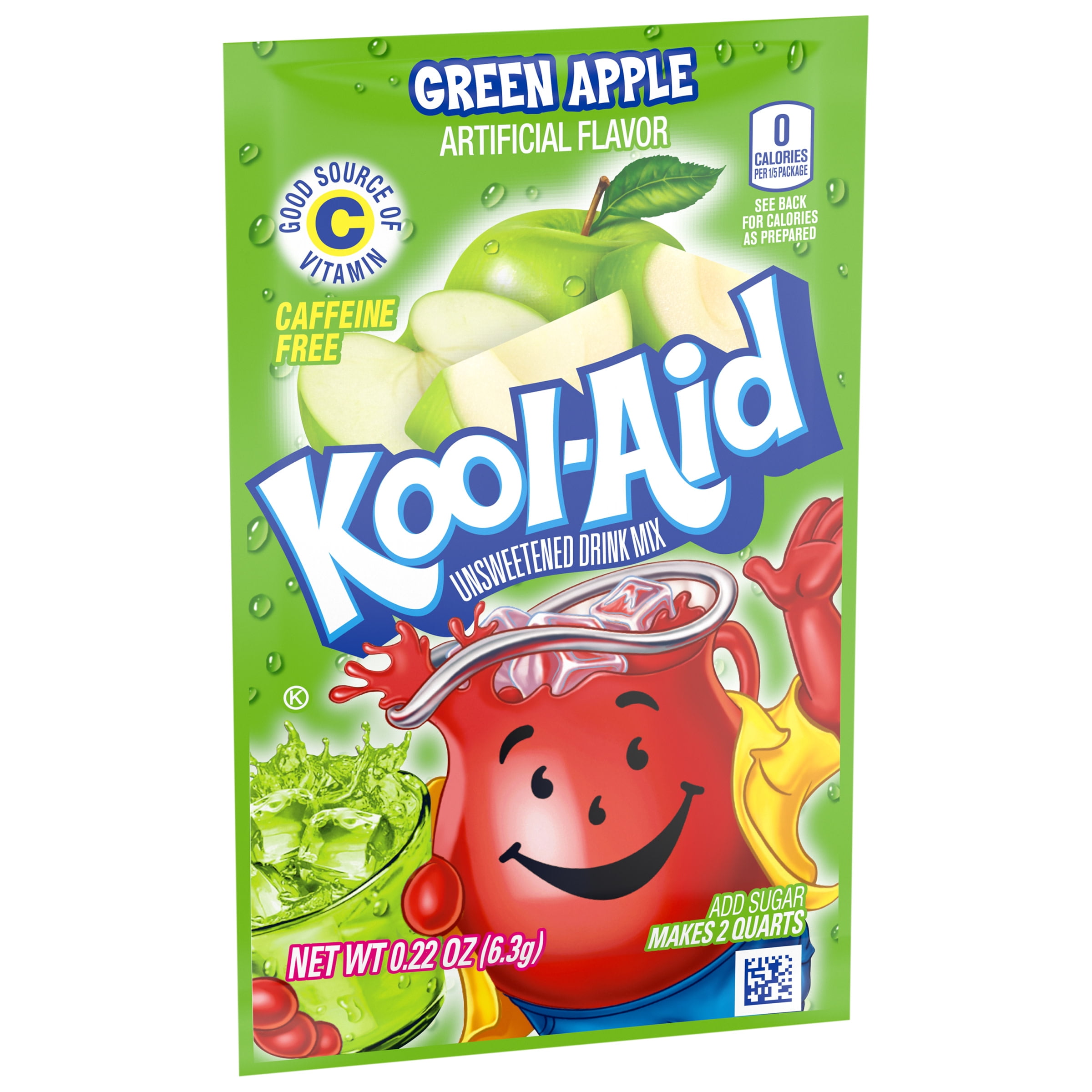 - Kool-Aid Artificially Flavored Green Apple Unsweetened Powdered Drink Mix is a delicious way to stay hydrated