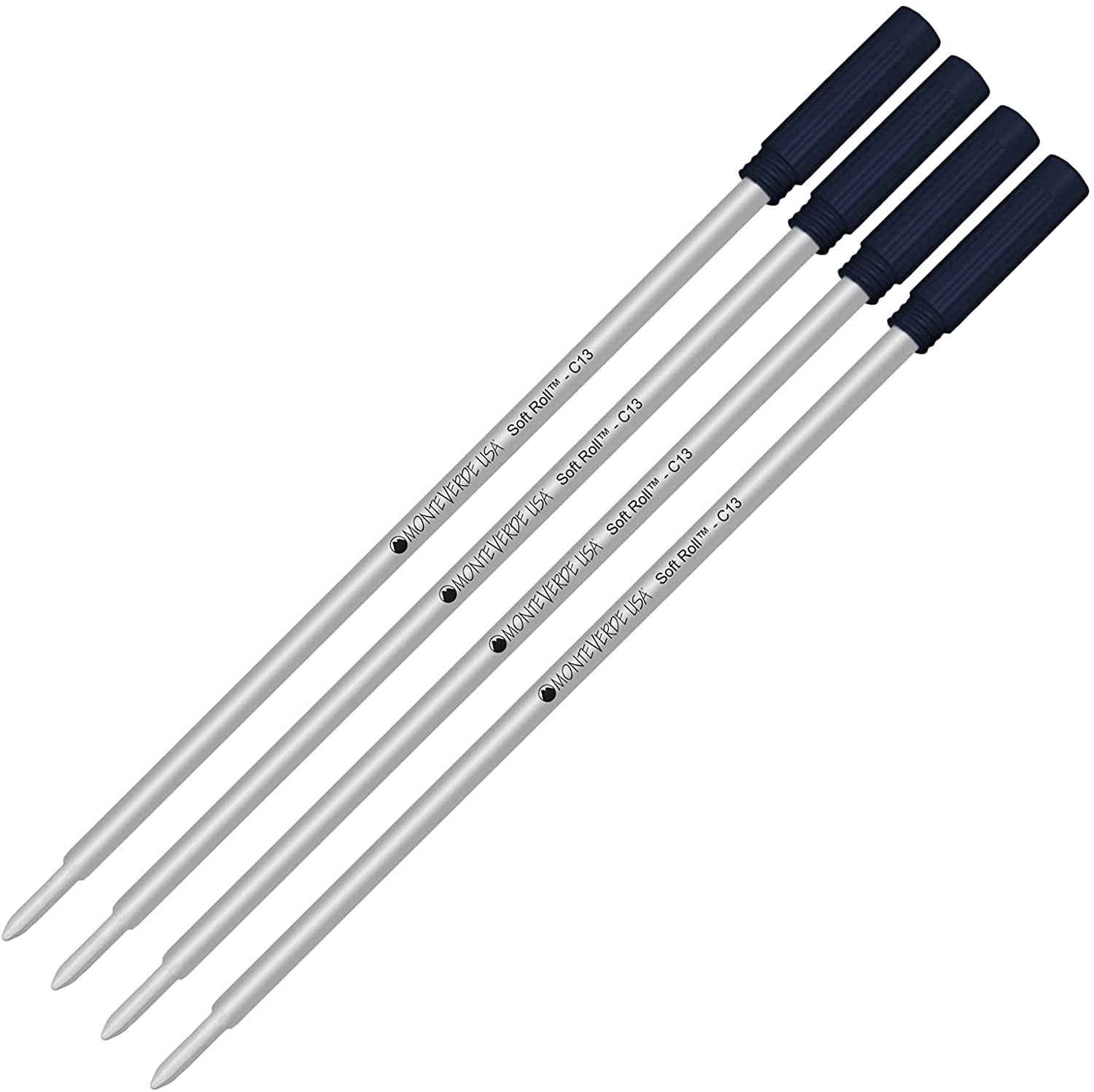 - 4 Pack – Monteverde® Soft Roll™ Ballpoint C13 Paste Ink Refill Compatible with most Cross® Style Ballpoint Pens – BlueBlack (Medium Tip 0.7mm)