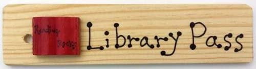 Library Pass – AA-911L Made in USA – 8"x2" Wooden Pass w/Book & Hang Loop