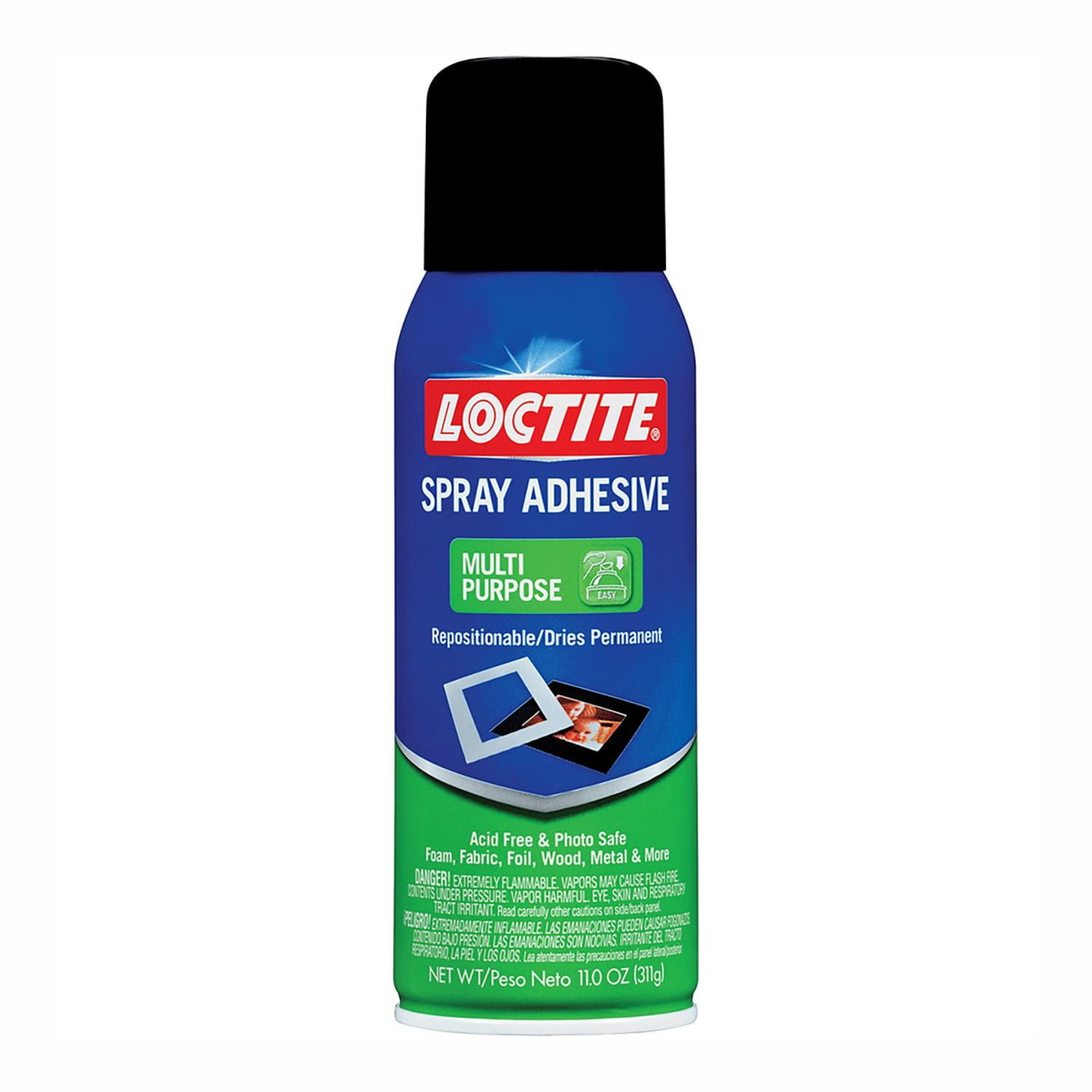 Loctite Spray Adhesive Multi Purpose is a premium quality formulation that dries clear and has a superior bonding strength. It dries quickly and is ideal for a wide range of household and automotive repair projects. Loctite Spray Adhesive Multi Purpose will work on a variety of porous and non-porous substrates including paper, cardboard, foam, fabric, leather, felt, cork, foil, certain plastics, metal, glass and wood. This premium formula will not bleed through, wrinkle, or curl and requires no reworking for a repositionable or permanent bond. Fast acting, this spray adhesive sets in just 10 minutes with full cure in 24 hours for invisible repairs and dries clear without yellowing with age. Multiple coats can be applied to increase the bond strength.