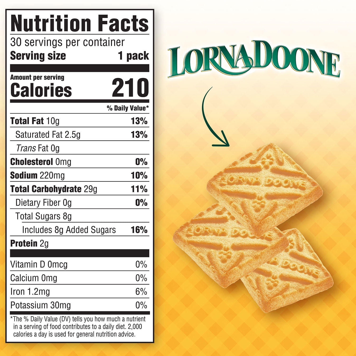 Lorna Doone Shortbread Cookies offer classic cookie snacks that have been an American tradition since 1912. These golden, square-shaped shortbread snack cookies treat your taste buds to a melt in your mouth taste that’s irresistible. Thick, rich and full of buttery flavor, the Lorna Doone is known for its traditional home-made taste and offers the perfect way to enjoy a sweet snack. Lorna Doone contains no trans fat or cholesterol and is only made with Kosher certified dairy ingredients. They’re great for sharing with family and friends. Pack them in lunches, or have them on hand for an easy dessert after dinner
