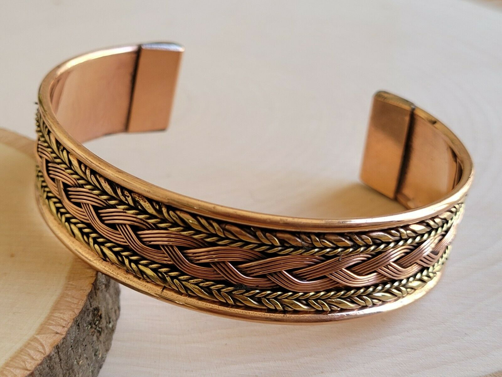 Solid Copper Two Tone Cuffed Bracelet Pure Copper Arthritis Pain Therapy Cuff