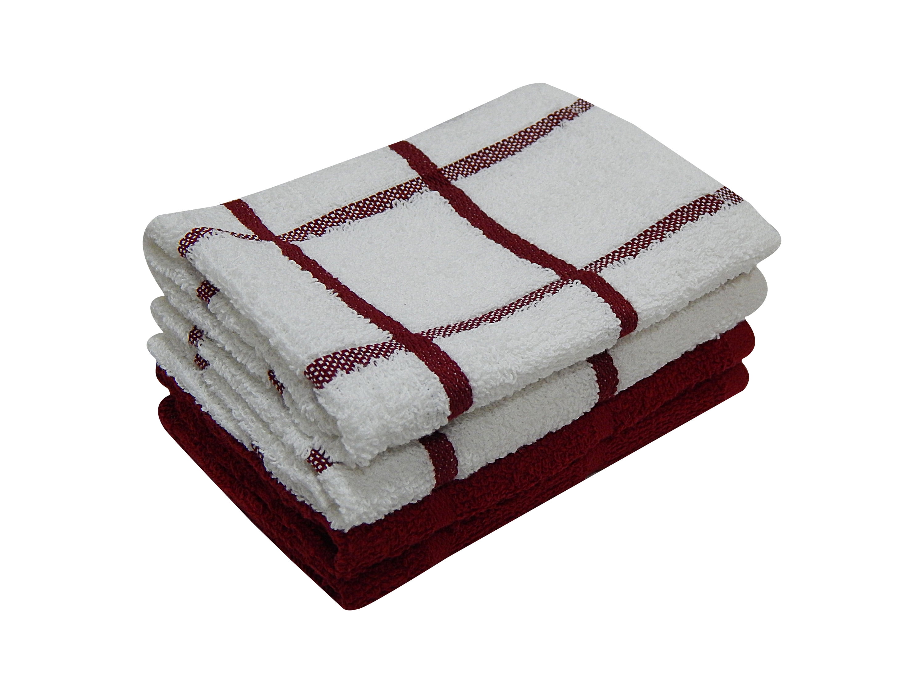 Brighten up your kitchen with the Mainstays 4-Piece Red Dishcloth Set. This 4-piece set includes (2) solid dishcloths with (2) coordinated stripe dishcloths. Each dishcloth measures 12 in. x 12 in. and is constructed of quality 100% cotton yarns. These Mainstays dishcloths are easy care machine washable. They are amazingly absorbent and will help you with any kitchen task. The Mainstays dishcloths can be used for various tasks around your home not just in the kitchen. Mix and match colors to create a bright, new atmosphere in the kitchen. The Mainstays 4-Piece Dishcloth Set is an amazing value and is easy on your pocketbook. This 4-piece dishcloth set is a wonderful gift idea for any new homeowner, newlywed or just for yourself.