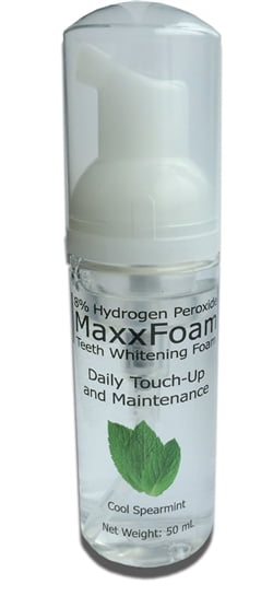 MaxxFoam 8% Hydrogen Peroxide foam is great for whitening your teeth as well as maintaining the whiteness that you worked so hard to get. Great mint taste that’s not over powering. Simply put one pump on your toothbrush and brush as you would normally. Expectorate but do not rinse.MaxxFoam Teeth Whitening "Foam." Designed to deliver gentle, powerful, longer-lasting results. The product features a revolutionary new technology that removes stains and whitens teeth safely and rapidly using a foaming formulation that penetrates better than any paste or gel.