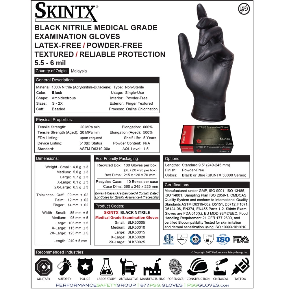 Skintx Medical Grade Nitrile Disposable Gloves, BLK50020-XL-BX, Black, (Pack of 90)
