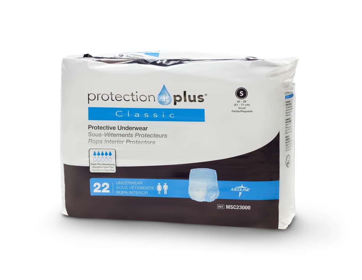Medline Protection Plus Classic Protective Underwear, Small, 22 Ct