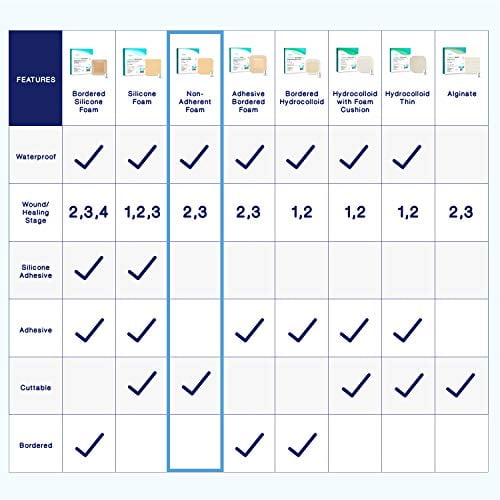 - COMFORTABLE USE: Conforms to body contours and provides maximum patient comfort. The foam dressing works well on wounds with moderate exudate. Does not stick to the wound to prevent secondary damage and can be cut to size for those difficult areas.