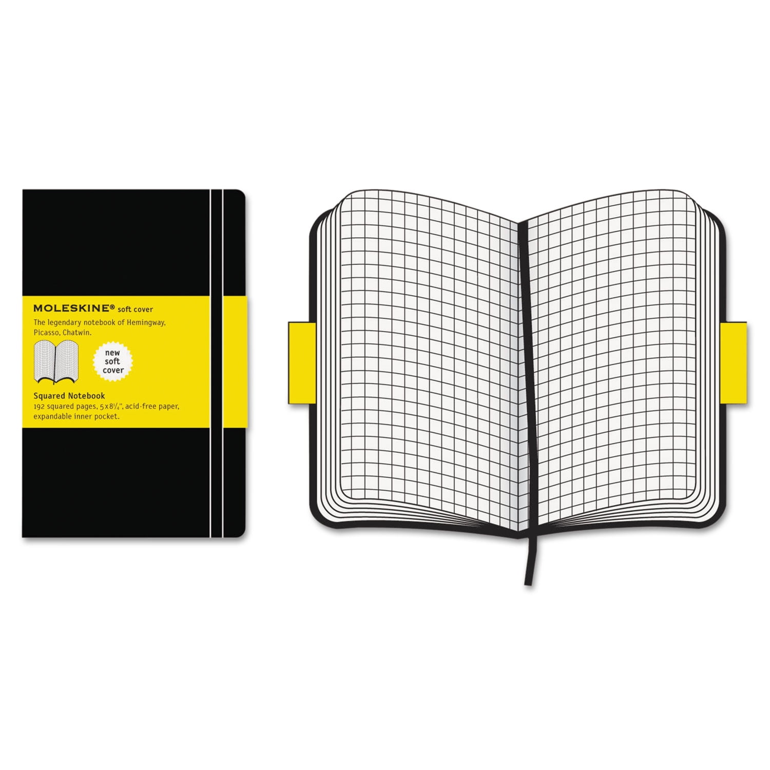Moleskine Classic Softcover Notebook, Squared, 8 1/4 x 5, Black Cover, 192 Sheets -HBGMSL15