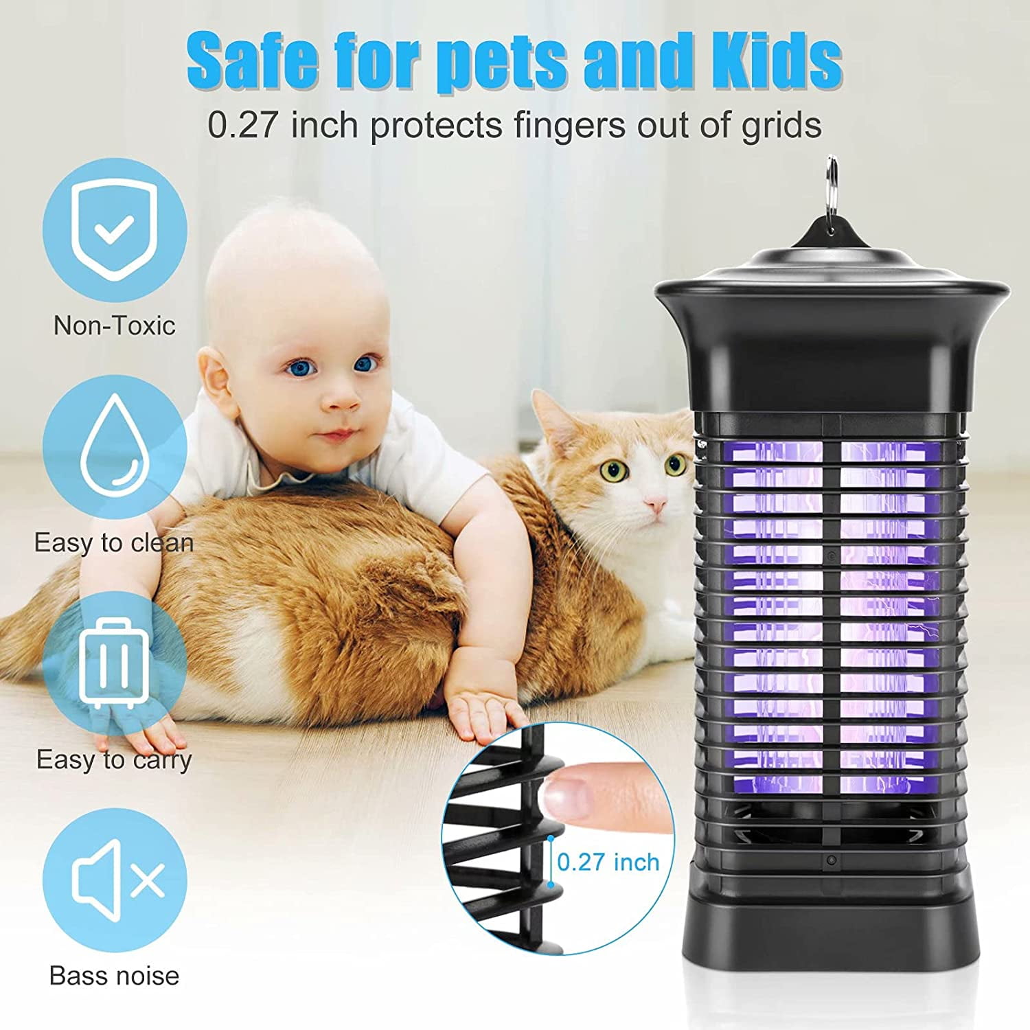 Tough Waterproof Mosquito Killer: Waterproof design reduce restrictions of our bug zapper indoor and bug zapper outdoor use. No matter the weather like, sunny or rain, just put mosquito trap in the place you need.