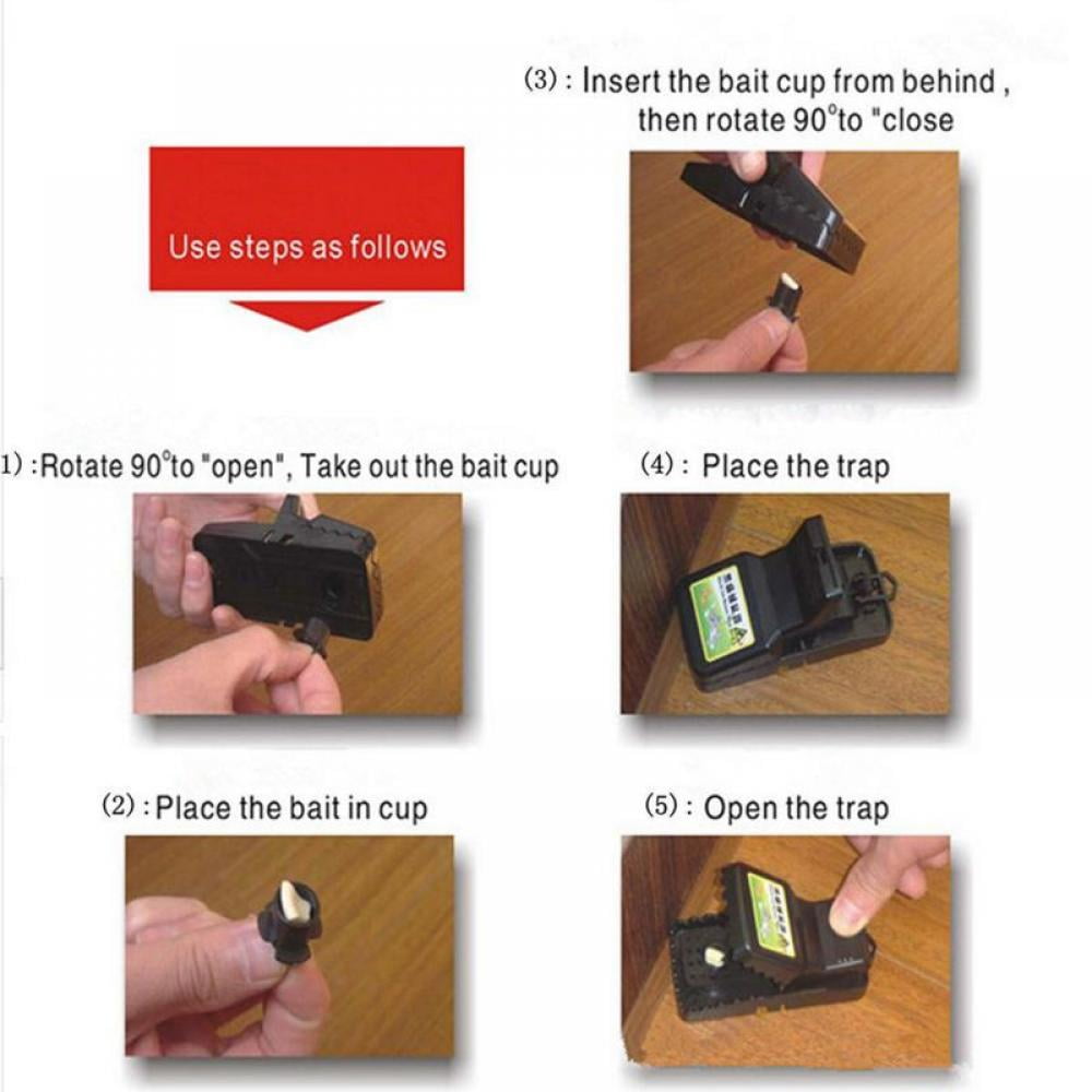- It is easy to use. After rotating 90 degrees to the "open" position to take out the bait cup, you can place the lure in it and then insert and rotate the cup again to the "close" position. Finally, you just need to place and close the trap. Done