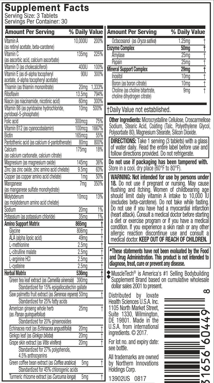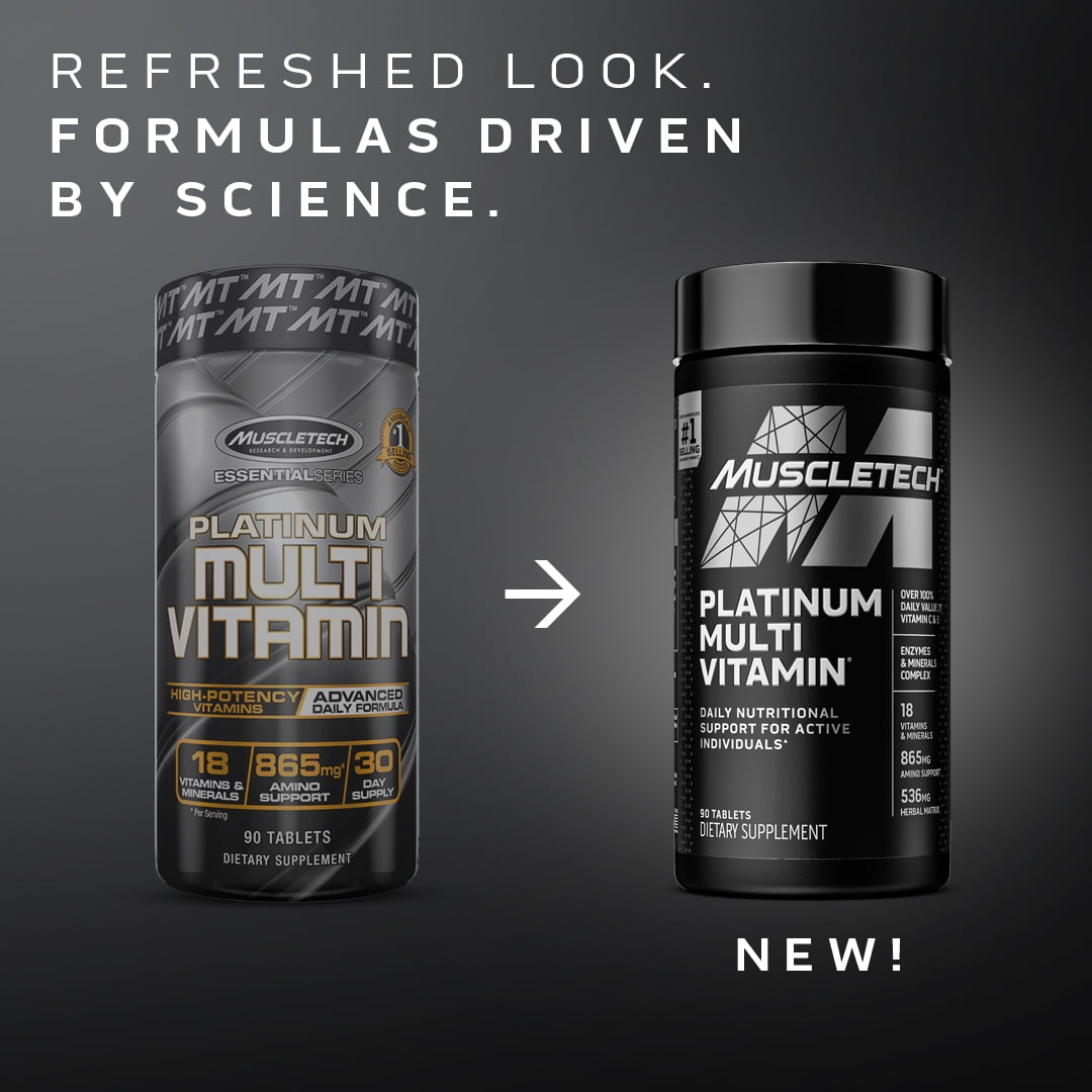 MuscleTech Platinum Multivitamin is a complete, advanced multivitamin complex packed with high-potency vitamins and minerals, plus an Amino Support Matrix. This truly complete daily formula is designed for elite athletes and active men and women for general health support. Platinum Multivitamin is a complete, advanced Unisex multivitamin complex packed with high-potency vitamins and minerals, plus an Amino Support Matrix. This truly complete daily formula is designed for elite athletes and active men and women for general health support. Platinum Multivitamin is a complete, advanced multivitamin complex packed with high-potency vitamins and minerals, plus an Amino Support Matrix. This truly complete daily formula is designed for elite athletes and active men and women for general health support. 90ct.