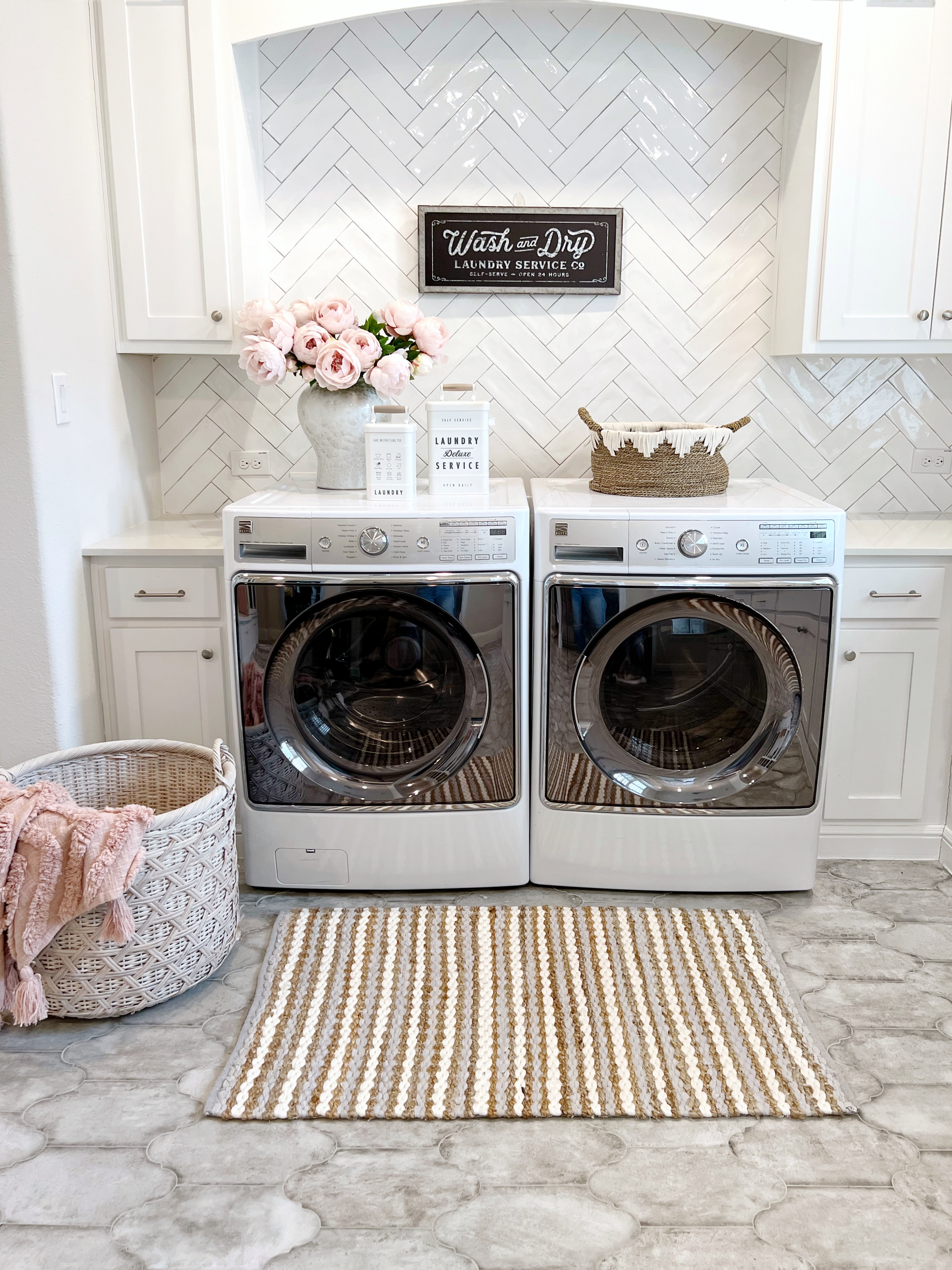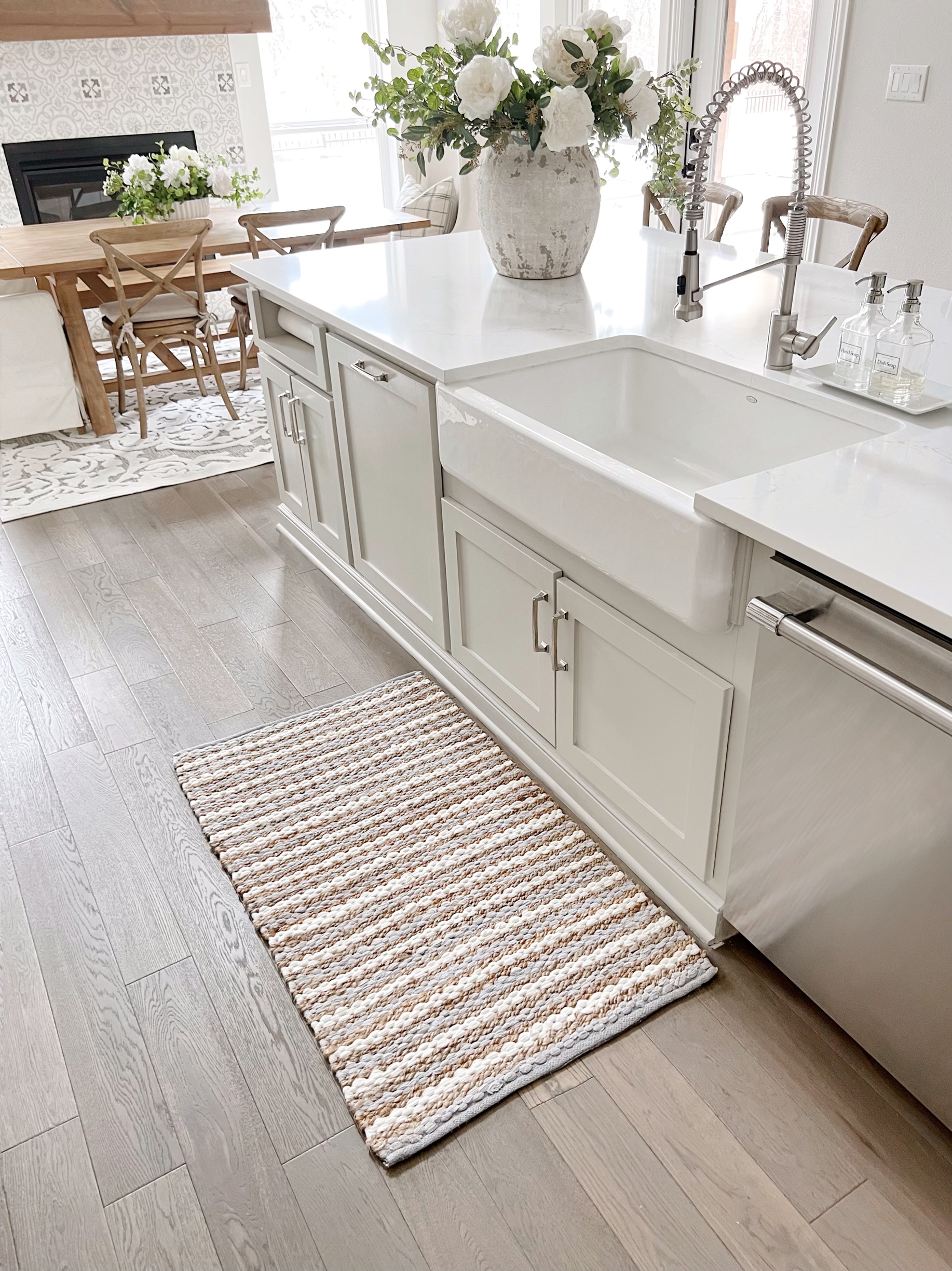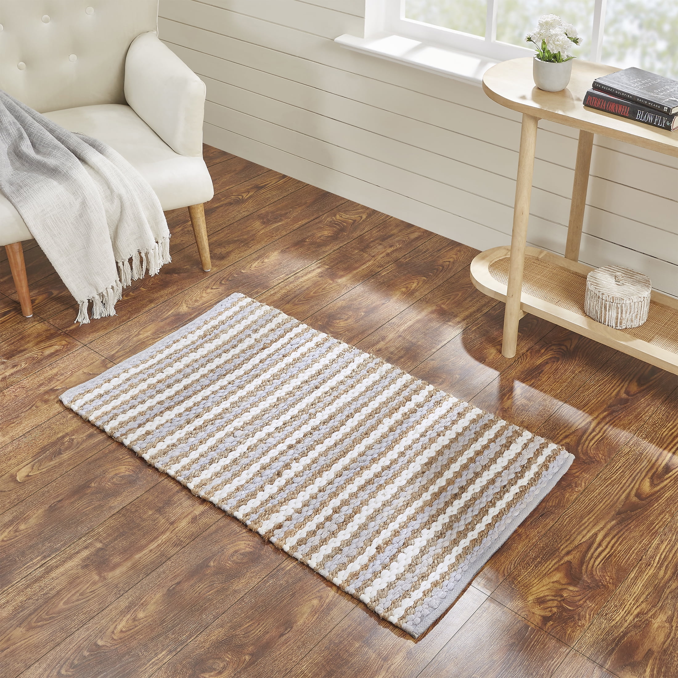 Make your floors pop with pattern with the My Texas House Marcus Multi Braided Stripe Indoor Scatter Rug. Perfect for the bedroom, living room, office décor, or anywhere you want to add an eye-catching accent, this scatter rug features white and grey fabric woven with braided jute for a unique, textured look. This scatter rug measures 27 inches x 45 inches and has a reinforced carpet backing for added protection. You can keep the accent rug looking new by spot cleaning stains with a dry cloth or wiping them with a damp cloth and dish soap-water mixture.