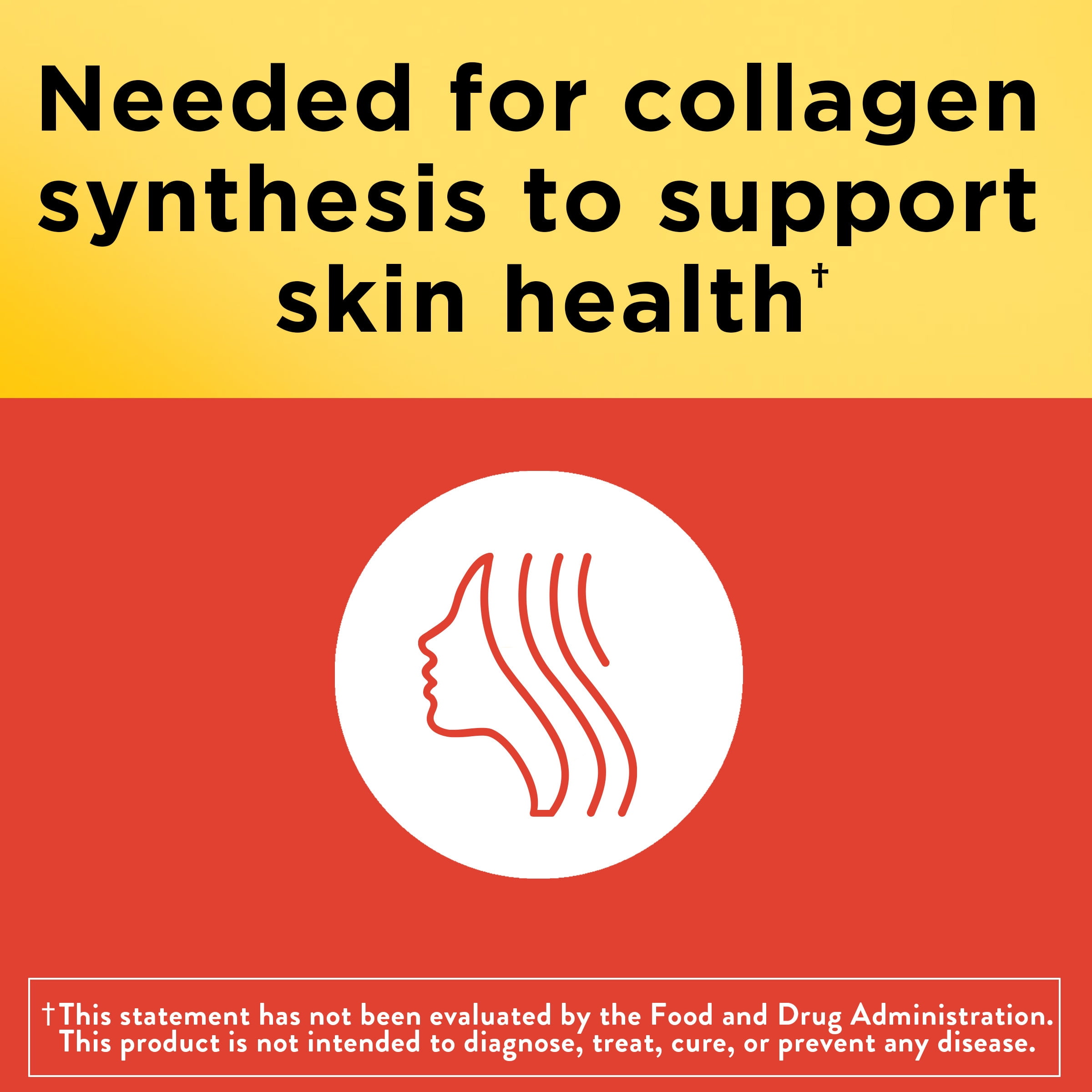 - This 1000 mg per serving Vitamin C supplement provides Vitamin C for adults, which is necessary for the body to produce collagen to help support healthy skin