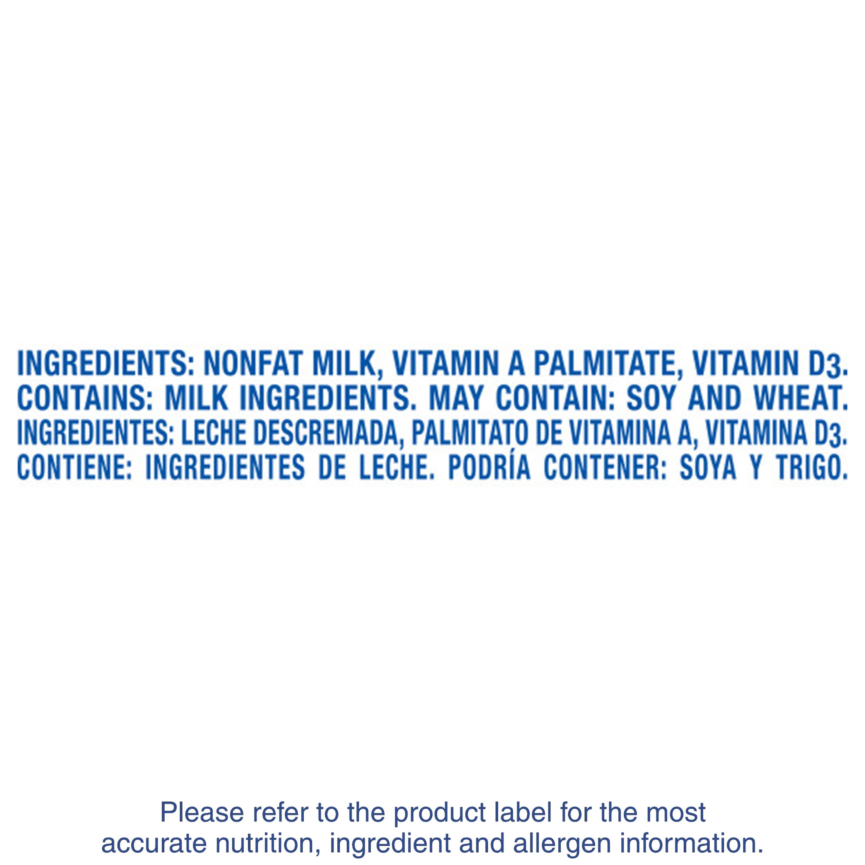 Per 1/4 Cup: 80 calories; 0 g sat fat (0% DV); 95 mg sodium (4% DV); 12 g total sugars. Nonfat. Fortified with Vitamins A+D. Excellent source of calcium. Nutritional Compass: Nestle – Good food, good life. Thoughtful Portion: 1 portion = 1/4 cup Carnation Instant Nonfat Dry Milk. Connect with Us: Visit us at TheCookingMilk.com. Text or Call: 1-800-854-8935. Makes 3 qts. New stay-fresh package. The cooking milk. Real. Pasteurized extra grade. The cooking milk. Carnation Instant Nonfat Dry Milk is always ready when your recipe calls for milk: Adds calcium and vitamins A & D to your smoothies and shakes. Makes breads and muffins tender. Adds flavor to sauces and soups. TheCookingMilk.com. how2recycle.info. SmartLabel: Scan for more info. Facebook. Having milk around the house just got a whole lot easier. Carnation Instant Nonfat Dry Milk can be stored in the pantry at room temperature until you need it. Just add water and you’ll have rich, delicious milk fortified with vitamins A and D. Great for drinking or baking, Carnation powdered milk makes breads and muffins tender, adds flavor to sauces and soups and adds nutrition to fruit smoothies and protein shakes. It’s so convenient and good for you, you’ll want to keep a bag in the cupboard at all times. Whether it’s drinks, dinners or desserts, Carnation Nonfat Dry Milk will help you to achieve mouthwatering results.