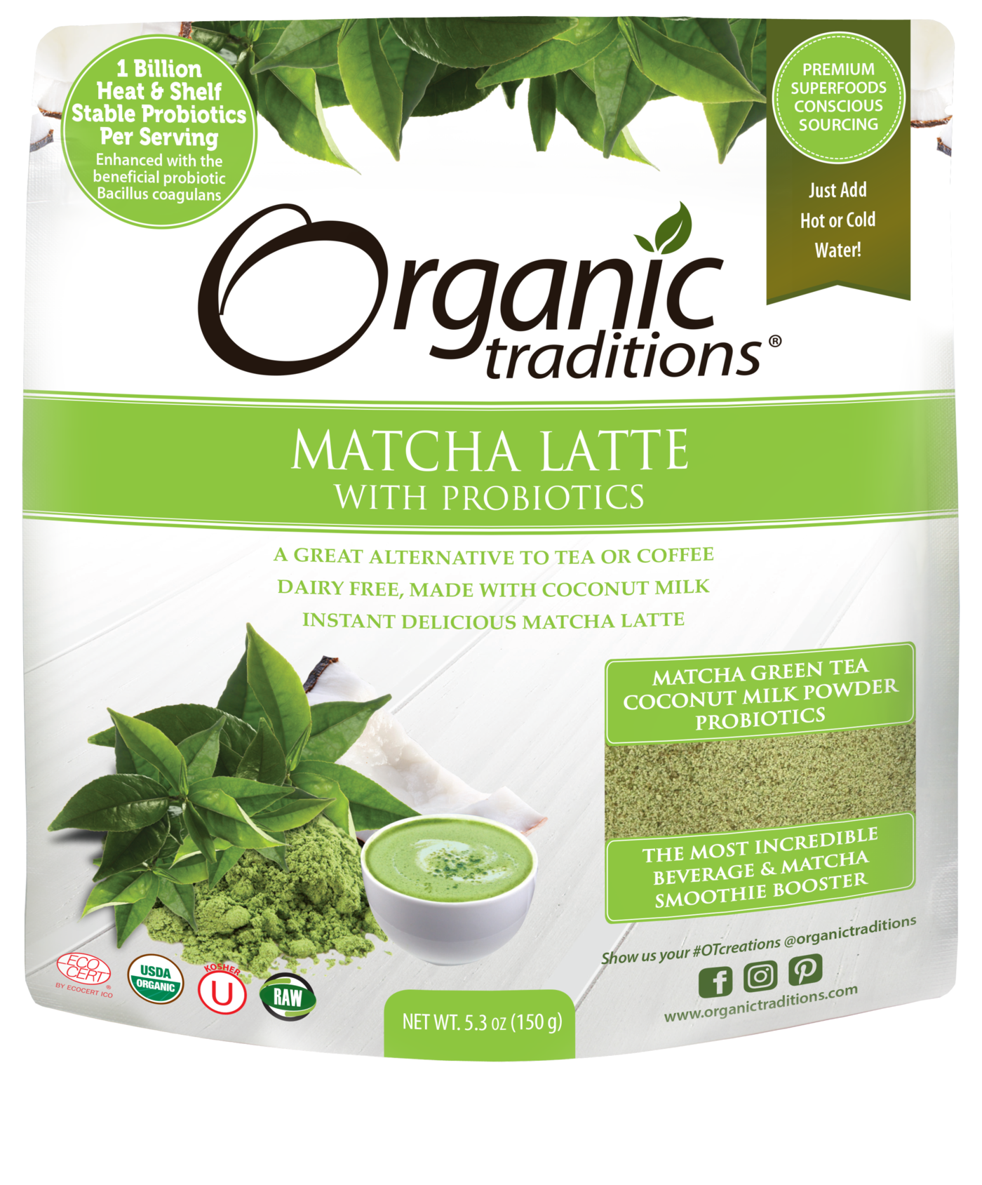 Organic Traditions, Latte Matcha Powder with Probiotics 5.3oz