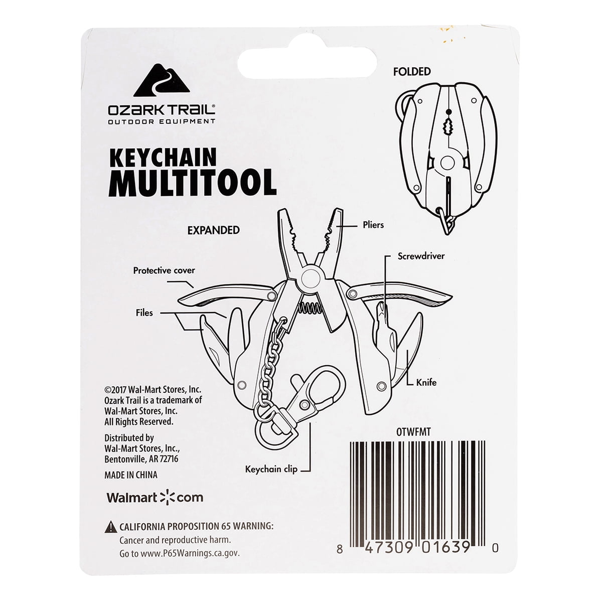 When you take the Ozark Trail Keychain Multitool with you on the go, you can have all your essential tools on hand and in one place. This mini multitool includes files, pliers, a screwdriver, a knife, and a protective cover all attached to a keychain. It can easily fold for compact storage and can conveniently be taken with you while traveling or when you’re outdoors camping. Whether you’re taking the family on an extended camping trip in the mountains or just taking a day trip to a local hiking trail, Ozark Trail has everything you need to enjoy the great outdoors. Browse all our gear like spacious tents, durable backpacks, warm sleeping bags, outdoor cooking supplies, and more. Step up your outdoor adventures and get ready for whatever the day throws your way with the Ozark Trail Keychain Multitool.