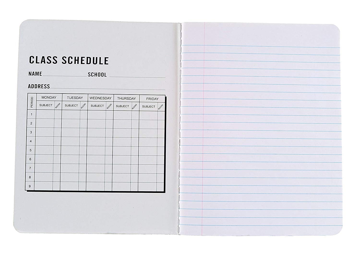 INFORMATION YOU NEED: Class schedule on the inside cover – multiplication table and conversion table rules on the inside back cover. Great for students in elementary school, middle school, and high school.