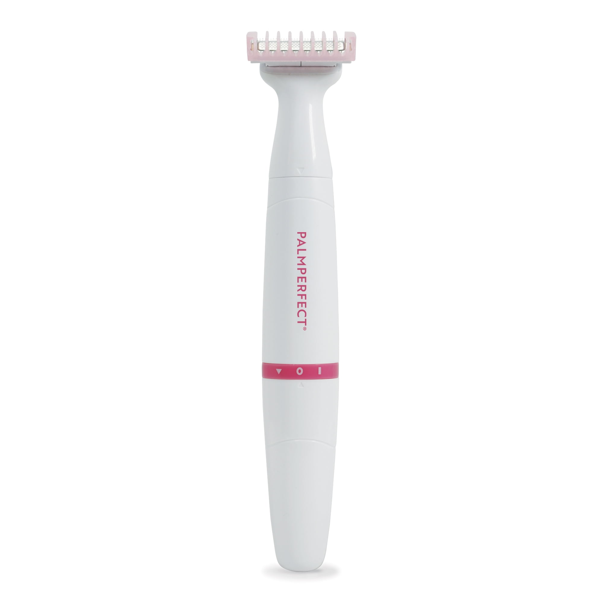 Achieve all of your shaving needs with one tool—the PALMPERFECT total grooming system. Our total grooming system is designed to use on the legs, face, underarms, and bikini area. This Female Electric Shaver comes with 3 different trimmers: a detail trimmer, a facial hair remover, and a bikini/body trimmer. The bikini and body trimmer come with four trimming guides designed to work on any part of the body. The detail trimmer is perfect for above the eyebrows and upper lip. Lastly, the facial hair trimmer painlessly removes peach fuzz. Make shaving simple by having all of your shaving tools in one device.